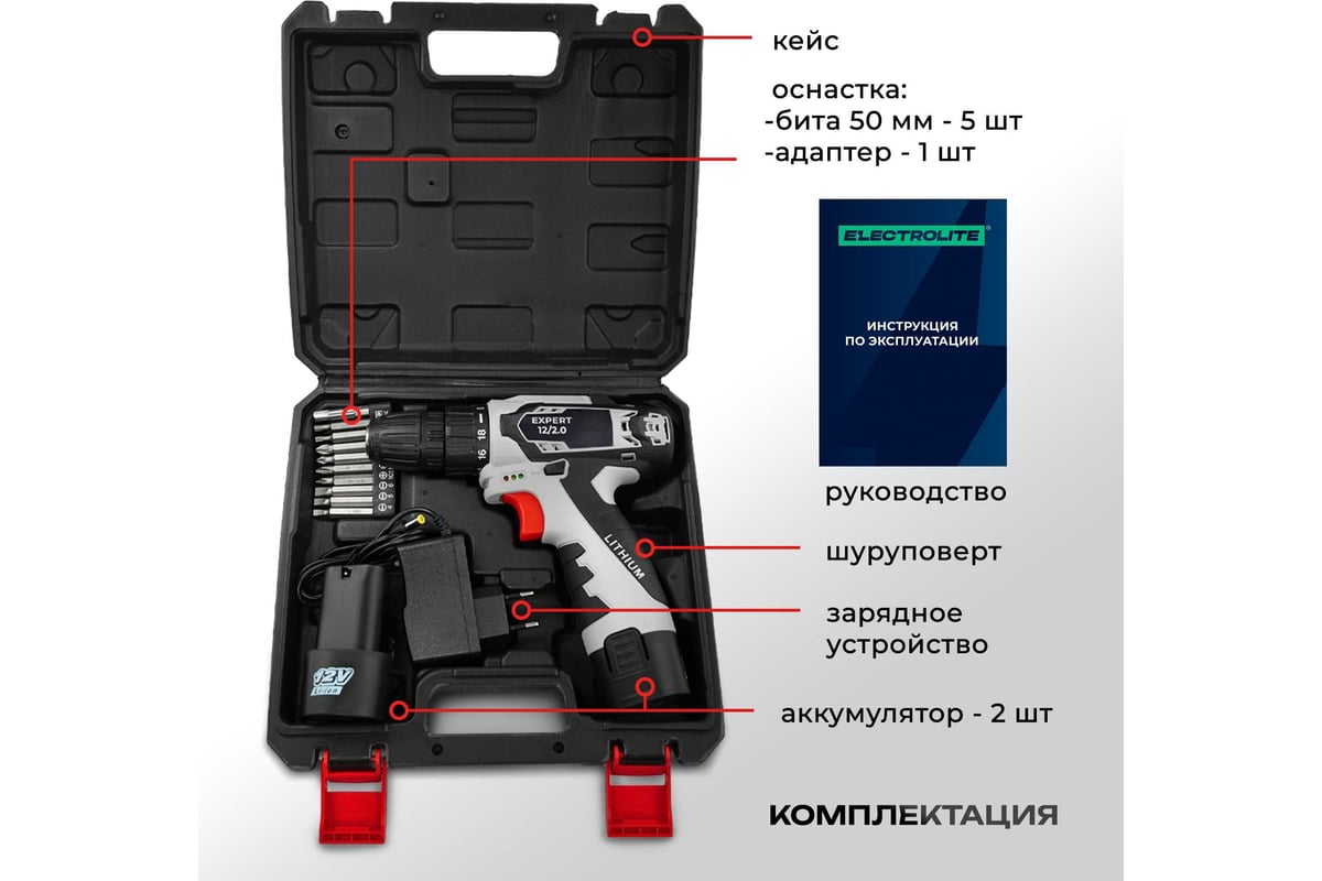 Аккумуляторный шуруповерт Electrolite Expert 12/2.0;