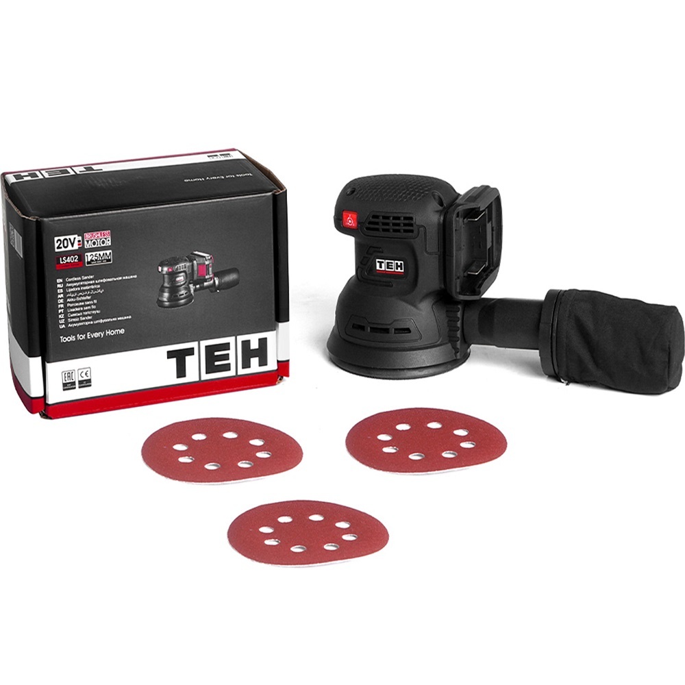 Аккумуляторная эксцентриковая шлифмашина TEH LS402 предназначена для зачистки, шлифования и полирования деревянных, металлических и пластмассовых поверхностей, а также поверхностей из других аналогичных материалов, с помощью шлифовальной бумаги соответствующей зернистости.