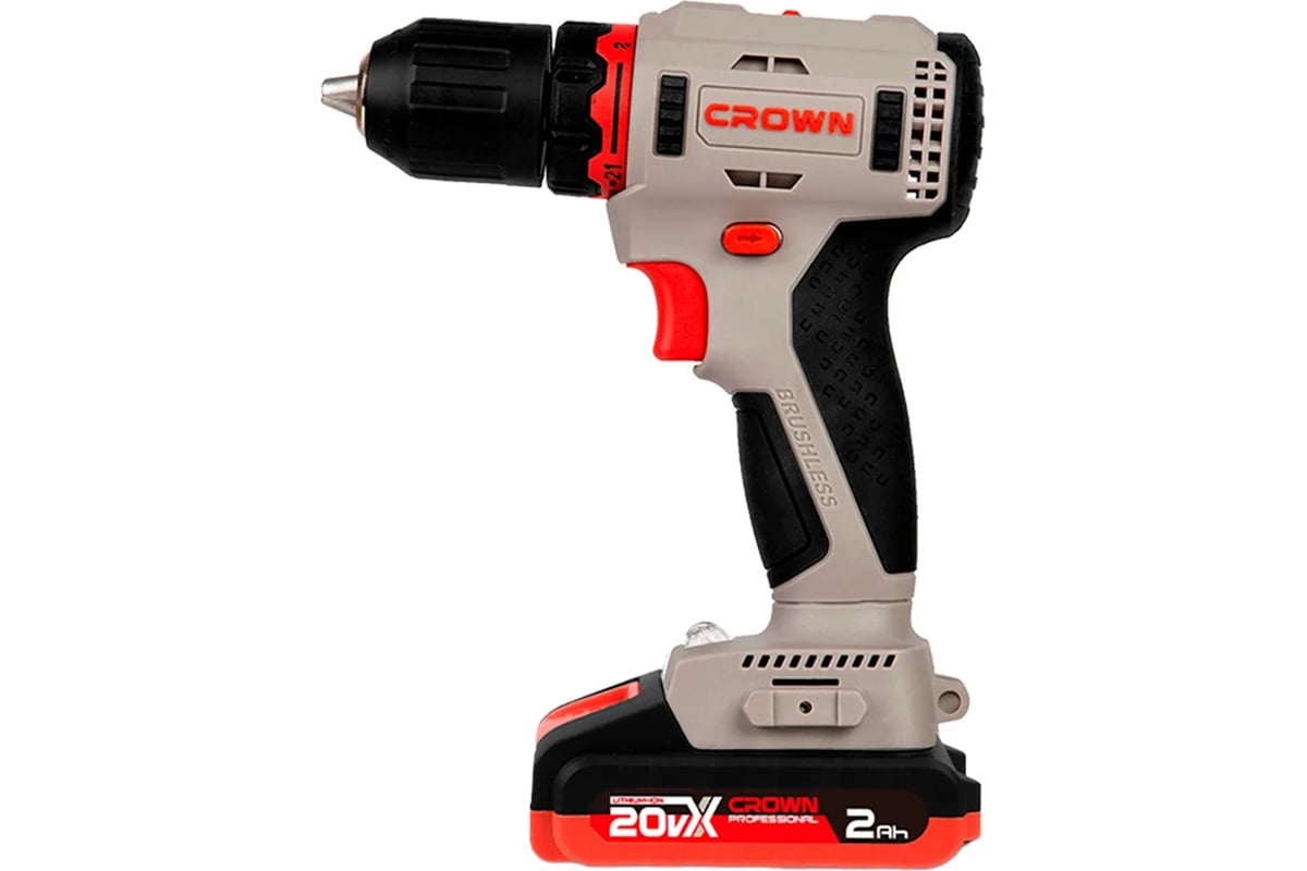 Crown CT21091HX-2 BMC — это современная бесщеточная дрель-шуруповерт из профессиональной линейки B3+. Благодаря бесщеточному двигателю, инструмент обладает высоким крутящим моментом (55 Нм) при достаточно компактных габаритах. Модель универсальна: она подходит как для закручивания крепежа (до 8 мм), так и для сверления металла и дерева. Металлический патрон с блокировкой шпинделя позволяет менять оснастку одной рукой, что существенно ускоряет работу.