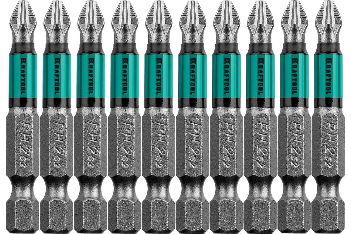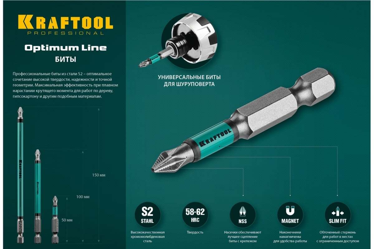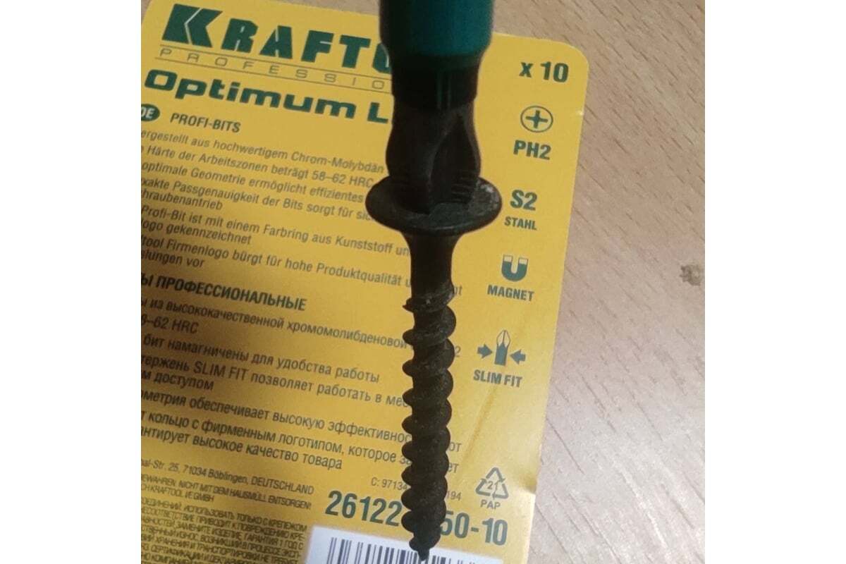 Преимущества профессиональных бит для шуруповерта KRAFTOOL 26122-2-50-10- Оптимальное сочетание высокой твердости, надежности и точной геометрии
