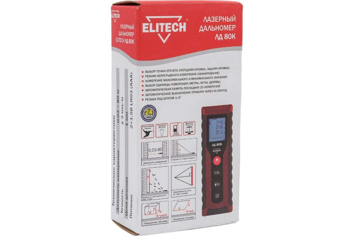 Лазерный дальномер ELITECH ЛД 80К предназначен для быстрого измерения расстояний на дальности до 80 метров. Он точнее обычной рулетки при измерении расстояния более 8 метров.
