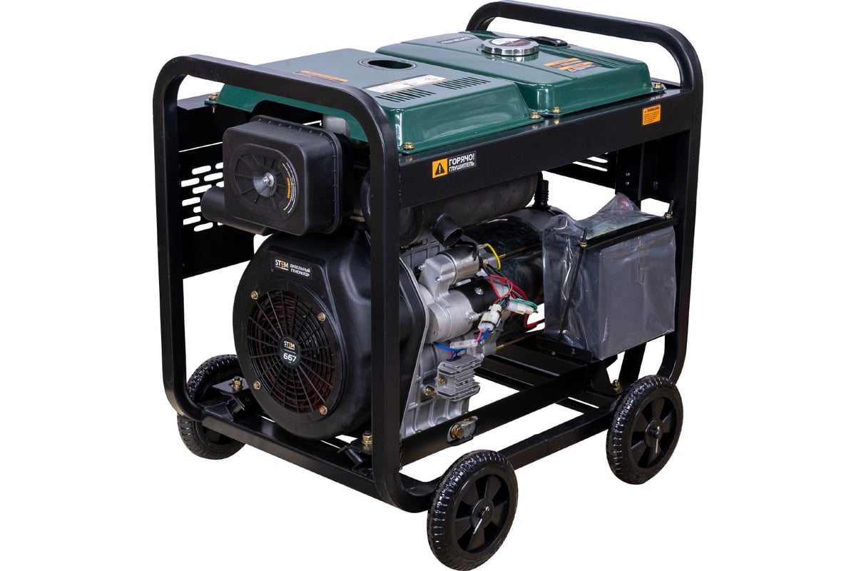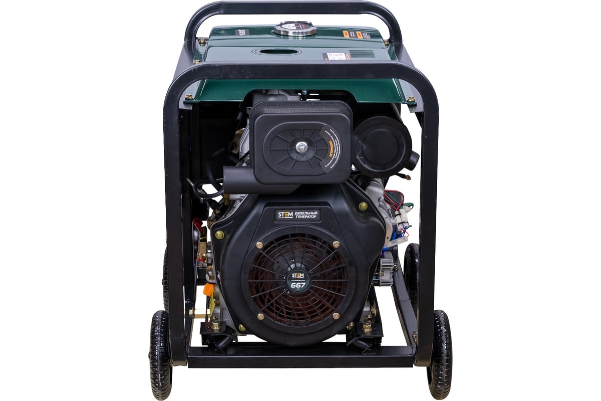 STEM Techno S8500DE — это открытый дизельный генератор, предназначенный для автономного электроснабжения. Главное преимущество модели — универсальный альтернатор (220/380В) с медной обмоткой, что позволяет подключать как бытовую технику, так и промышленное оборудование. Двигатель мощностью 16 л.с. оснащен системой предпускового подогрева, что критично для запуска дизеля в зимних условиях. На панели управления предусмотрен выход (разъем) для подключения системы автоматики.