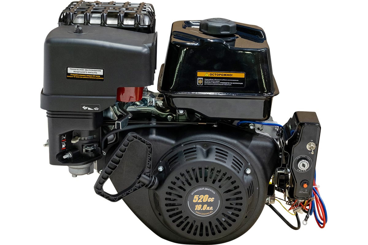 Dinking DK196FE-S — это флагманский зимний двигатель, сочетающий колоссальную мощность 19 л.с. и максимальный комфорт управления. В отличие от версии с ручным пуском, данная модель оснащена электростартером, что позволяет заводить тяжелый агрегат объемом 520 см³ простым поворотом ключа (что особенно важно при критически низких температурах). Зимнее исполнение подразумевает отсутствие бумажных фильтров, защиту карбюратора от обледенения и наличие мощной электросистемы для питания оборудования.