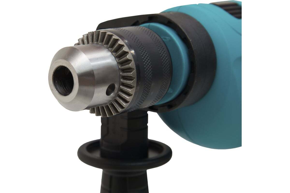 - Надёжный металлический патрон предотвращает ослабление затяжки оснастки во время сверления.