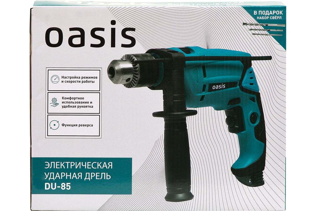 Электрическая ударная дрель Oasis DU-85 идеальна для выполнения сверлильных работ в металле, дереве, пластмассе в режиме сверления; в бетоне, кирпиче в режиме сверления с осевыми ударами. Инструмент является реверсивным, что позволяет изменять направление вращения и расширяет его функциональные возможности: может использоваться как шуруповерт, для завинчивания или вывинчивания винтов и шурупов, нарезания резьбы метчиками и прочее. В комплект с дрелью входят дополнительная удобная рукоятка и ограничитель глубины, делая сложную работу более комфортной.