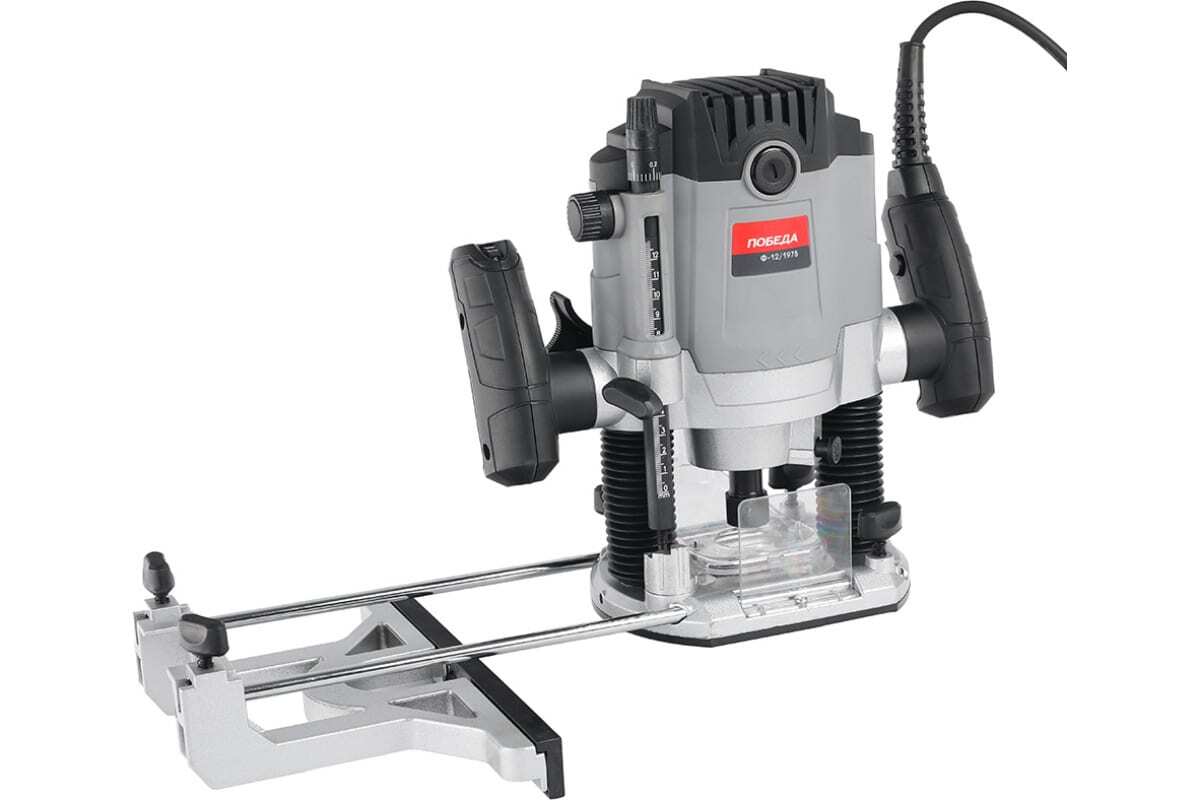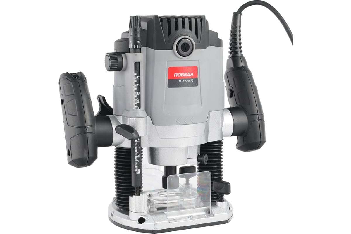 Электрический фрезер ПОБЕДА Ф-12/1975 150300190 служит для фрезерования пазов и отверстий, обработки кромок заготовок из древесины, пластика и прочих материалов.