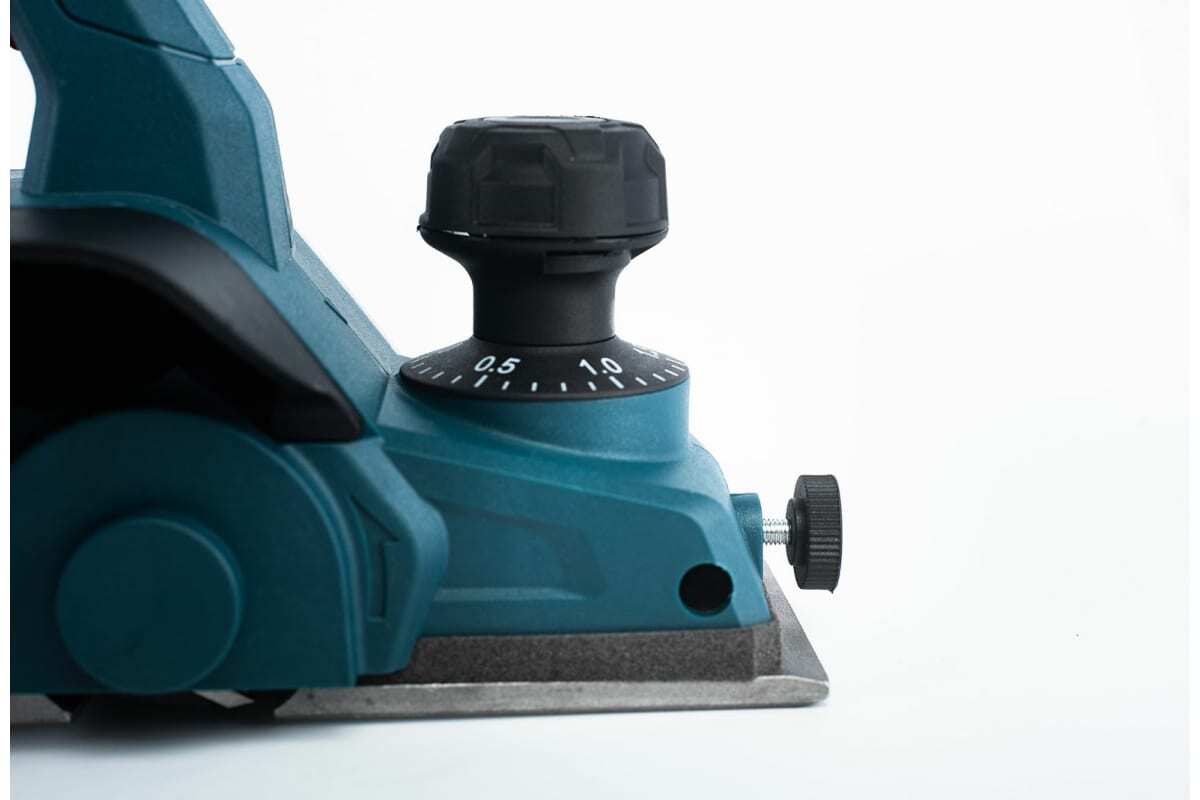 Для удобного использования предусмотрен поворотный механизм регулировки глубины строгания.