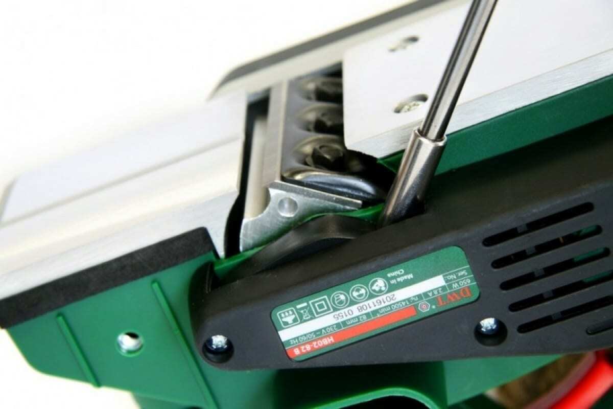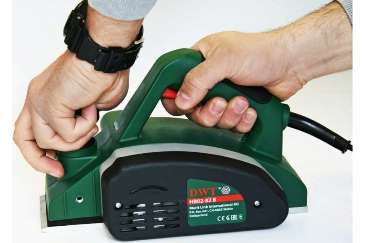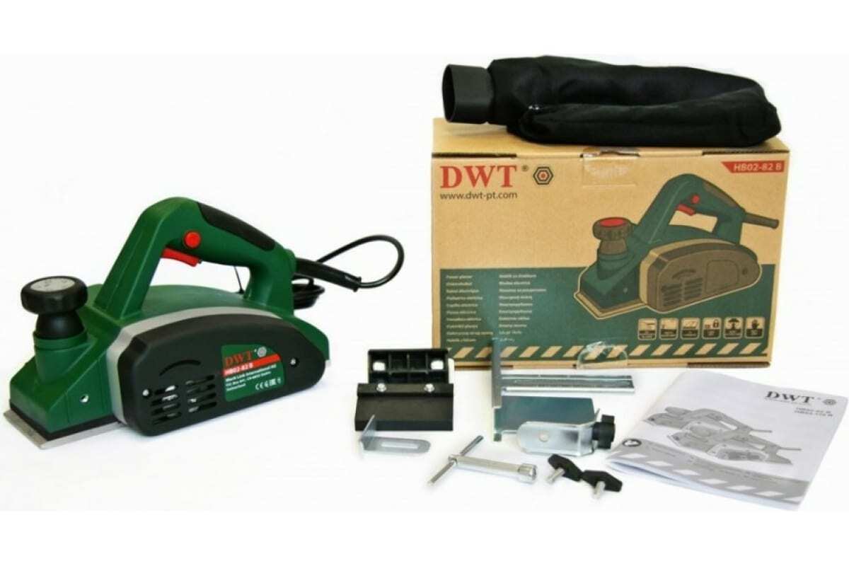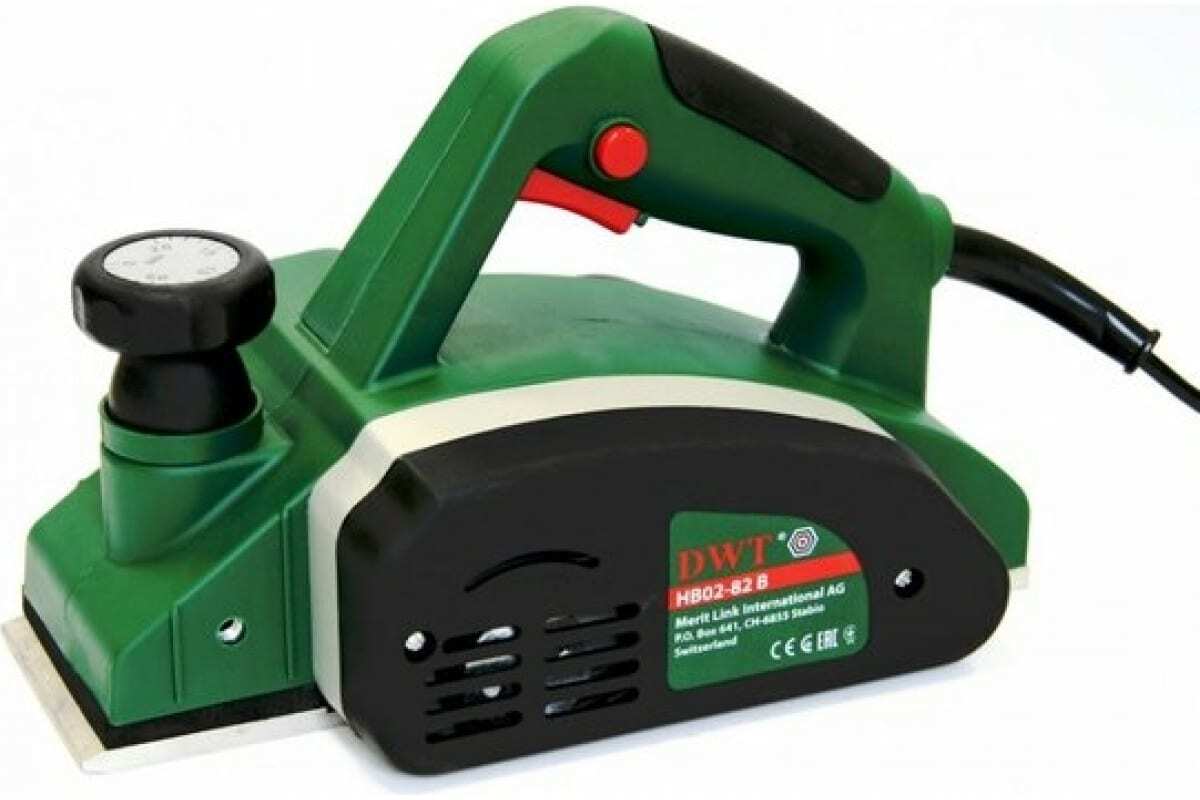 Электрический рубанок DWT HB02-82 B 5.1.15 - мощный инструмент для строгания древесины. Оснащен вертикальным и параллельным упорами. При помощи поворота рукоятки задается глубина обработки в диапазоне 0-2 мм. При малой глубине строгания и малой скорости подачи поверхность получается более гладкой. Наибольшее значение глубины строгания подходит для предварительной обработки поверхности, что ускоряет процесс выполнения работы.