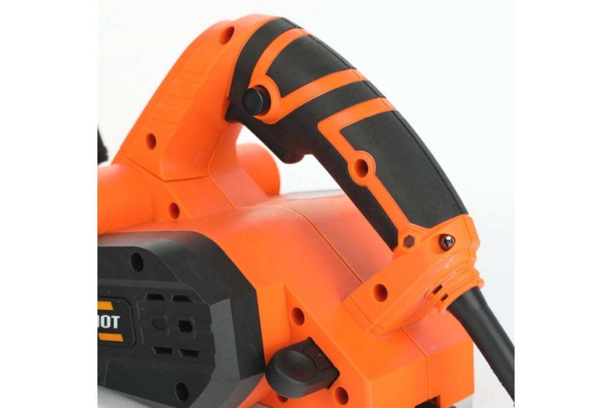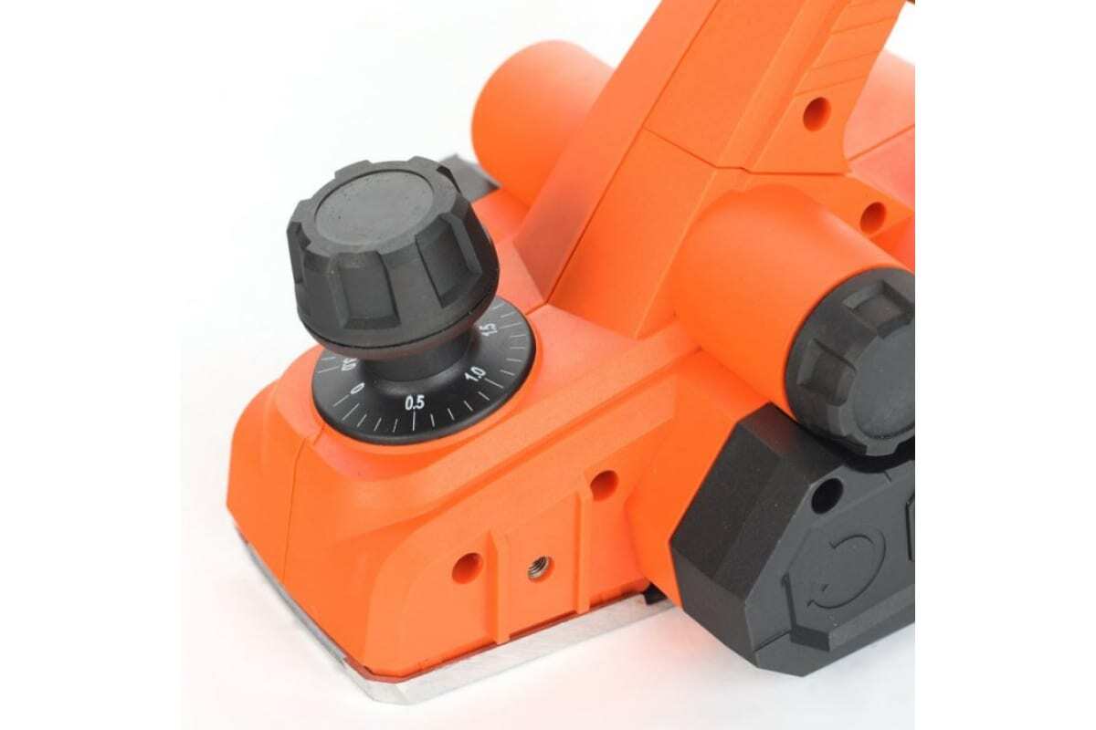 Удобный механизм регулировки глубины строгания совмещен с дополнительной рукояткой.