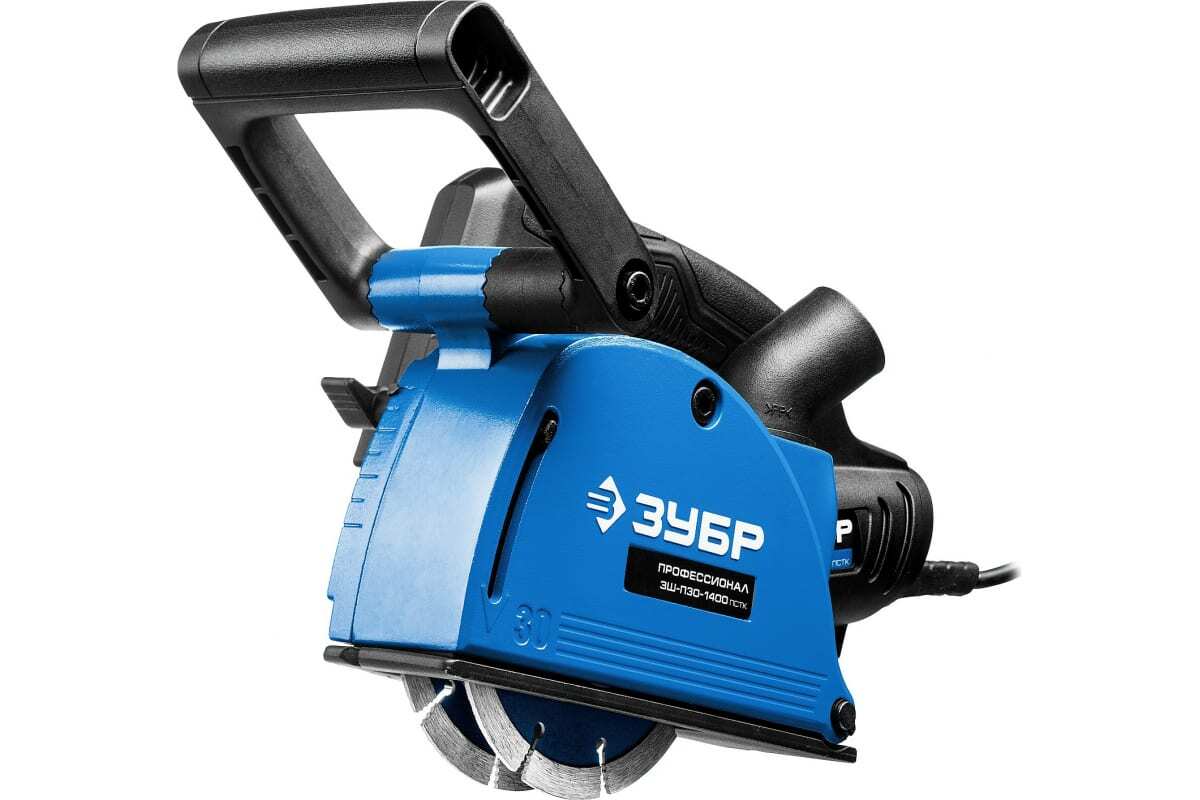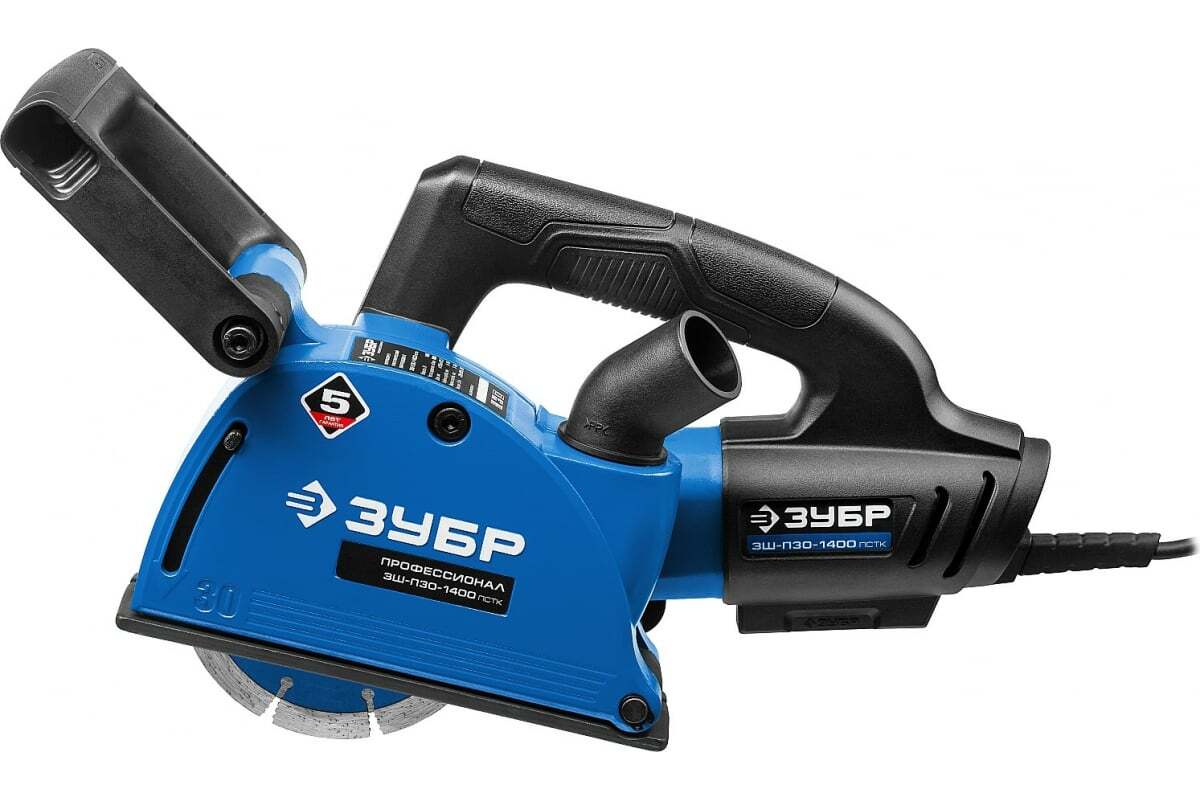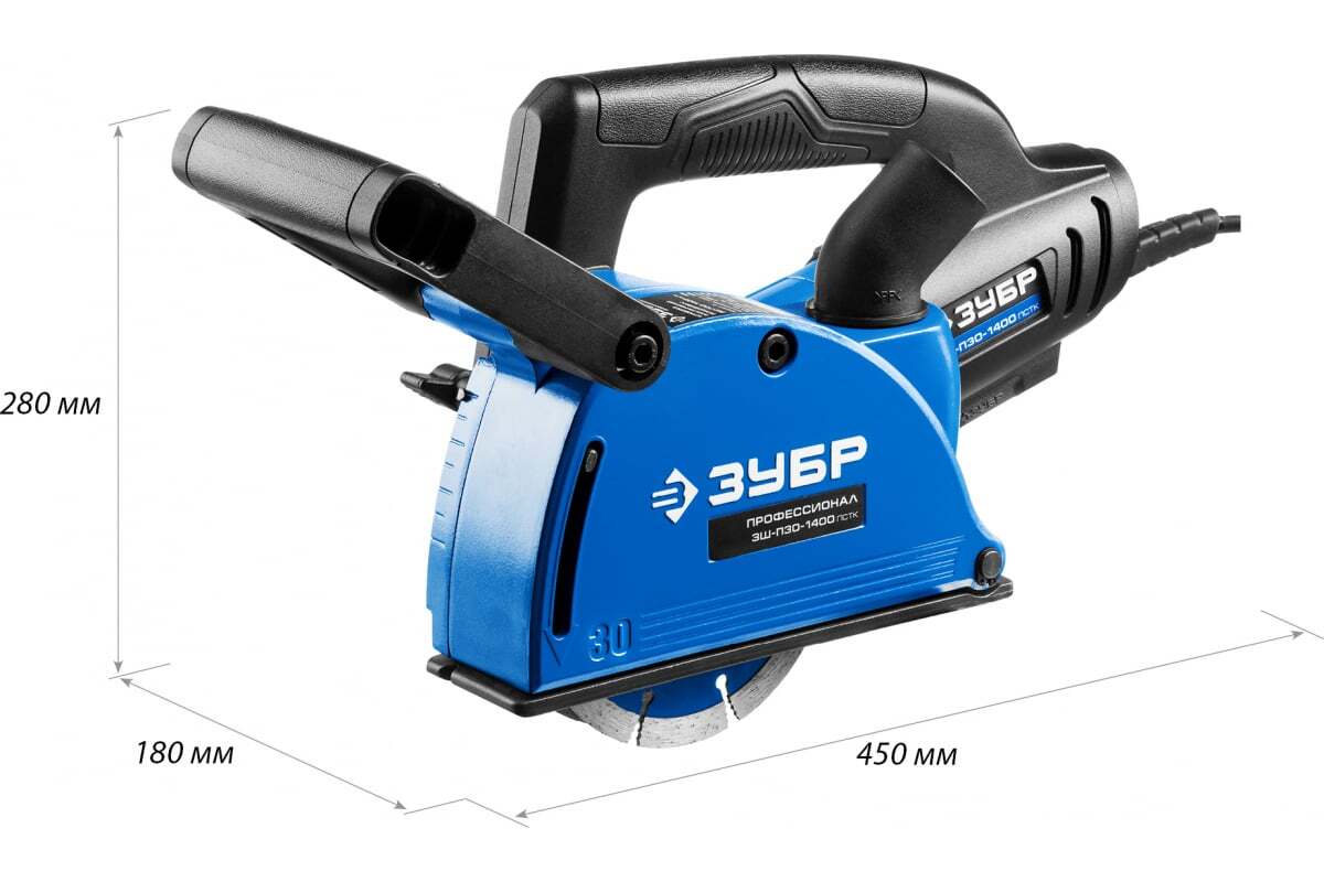 Электрический штроборез ЗУБР ПРОФЕССИОНАЛ ЗШ-П30-1400 ПСТК предназначен для выполнения штроб глубиной до 30 мм в бетонных и кирпичных поверхностях.