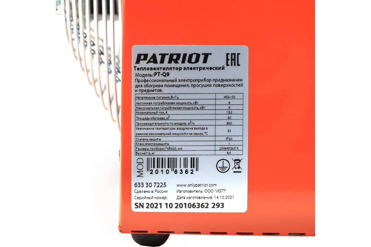 Преимущества Patriot PT-Q 9- Ступенчатая регулировка мощности 4.5/9.0 кВт.