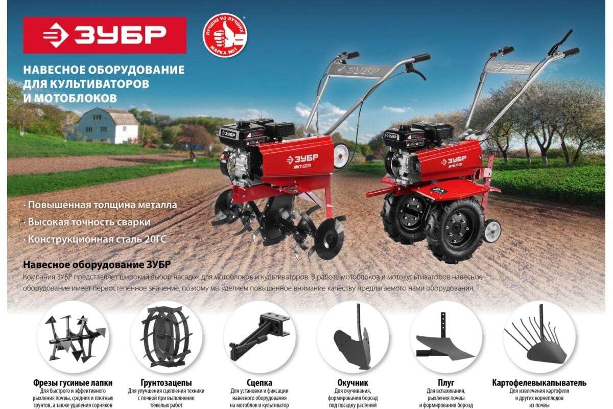 Преимущества фрез для мотоблоков ЗУБР 707108-1- Повышенный срок службы за счет увеличенной толщины металла