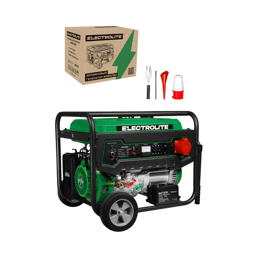 Electrolite 9000S/380 — мощная трехфазная бензиновая электростанция, предназначенная для автономного энергоснабжения частных домов, строительных объектов и производственных участков. Благодаря выходному напряжению 380В и 220В, модель универсальна для подключения как бытовых приборов, так и профессионального промышленного оборудования.