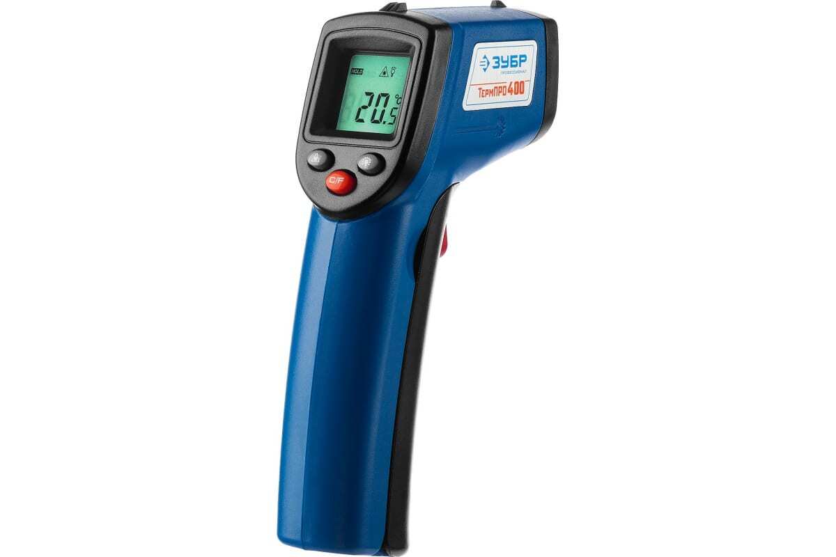 Инфракрасный пирометр Зубр ТермПро-400 ПРОФЕССИОНАЛ 45725-380 помогает определить температуру различных объектов и поверхностей на расстоянии.