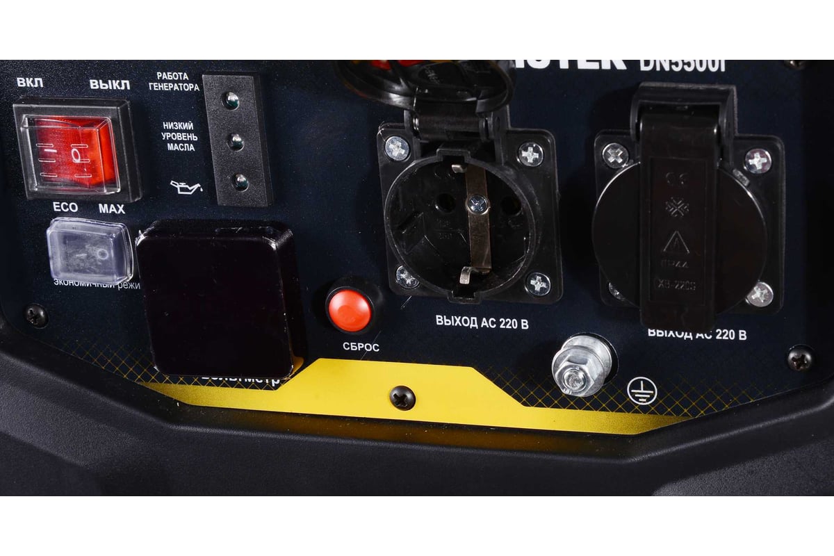 Экономичный режим (ECO): Система интеллектуального управления оборотами двигателя автоматически подстраивается под текущую нагрузку. Если к генератору подключен только один прибор, обороты снижаются, что экономит топливо и снижает уровень шума.