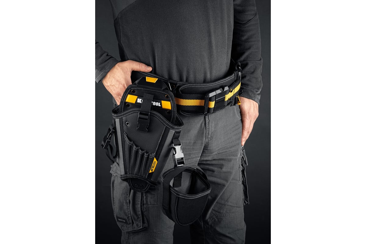 Выбор ремня: Хотя клипса FastClip универсальна, лучше всего она работает с жесткими инструментальными поясами (шириной до 50–60 мм). На обычном мягком брючном ремне кобура с тяжелым шуруповертом будет сильно оттягивать край и доставлять дискомфорт.