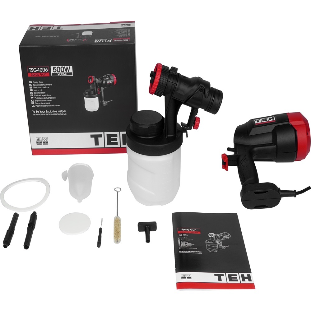 Краскораспылитель TEH TGS4006 предназначен для нанесения на различные поверхности эмалевых и водоэмульсионных красок, лаков, грунтовок, прозрачных лаков, морилок, средств защиты древесины на основе растворителей и воды соответствующей вязкости.