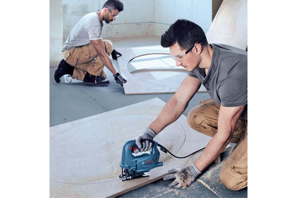 - Мощный двигатель лобзика 500 Вт позволяет пилить материал быстро и без усилий
