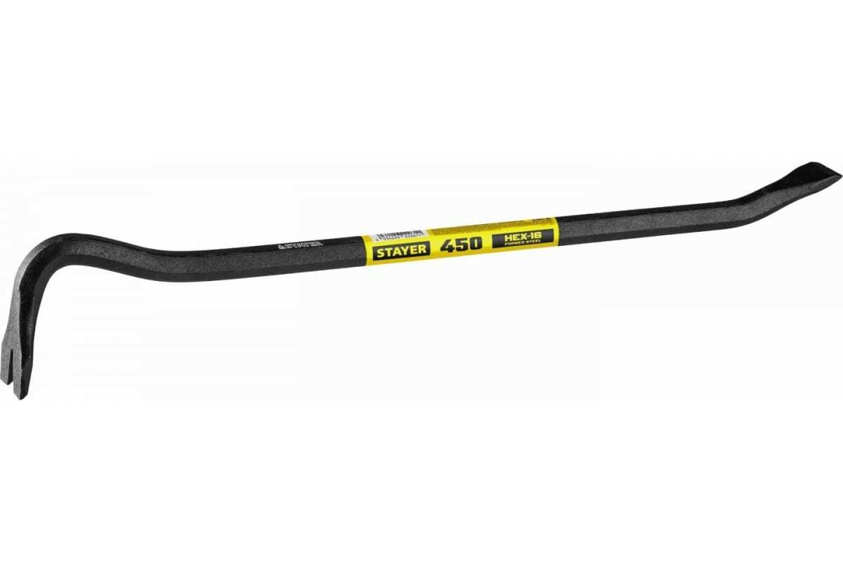 Лом-гвоздодер, 450мм, 16 мм, шестигранный STAYER 21641-45 обладает хорошей устойчивостью к изгибанию. Это позволяет выдерживать большие усилия при работе с крепежом или во время разбора деревянных конструкций.