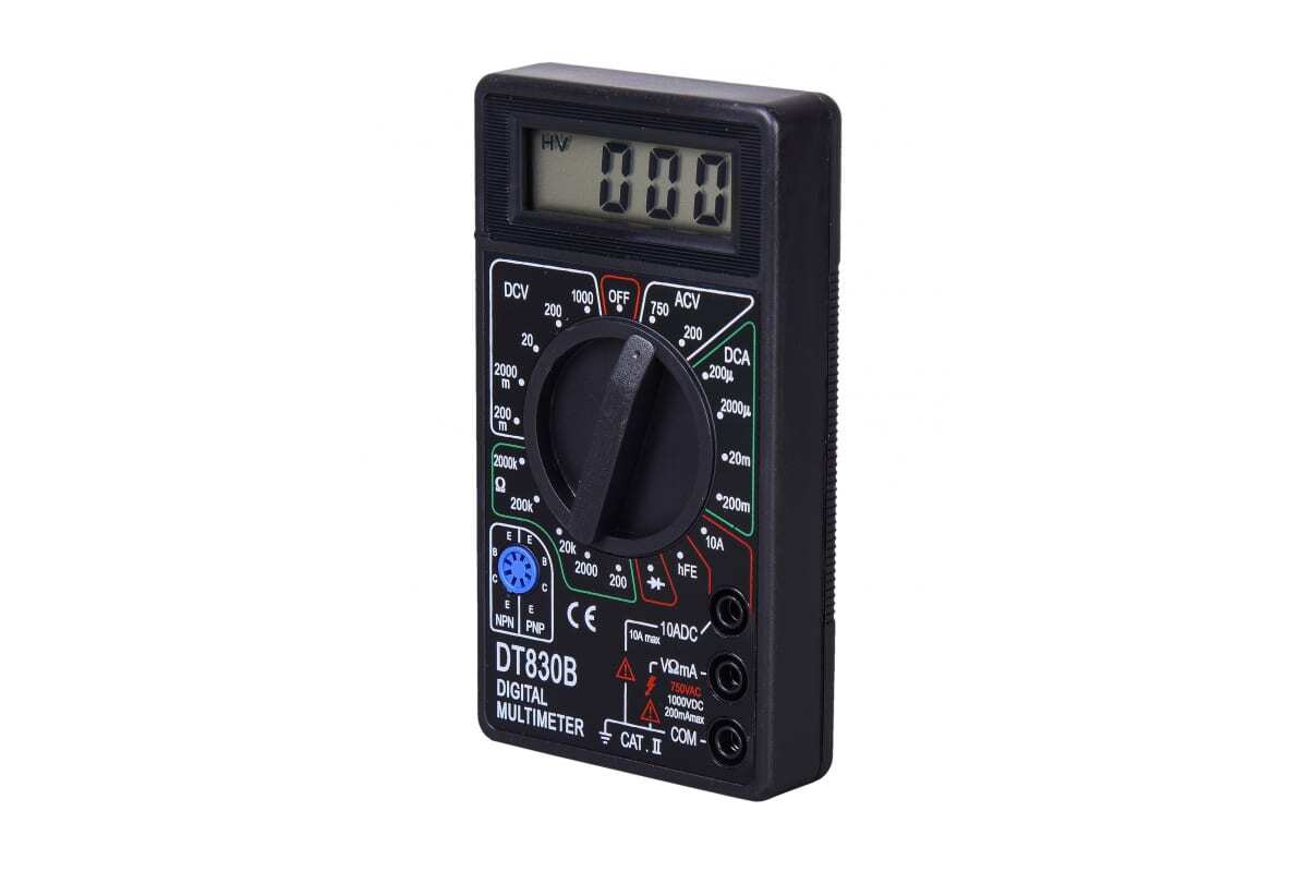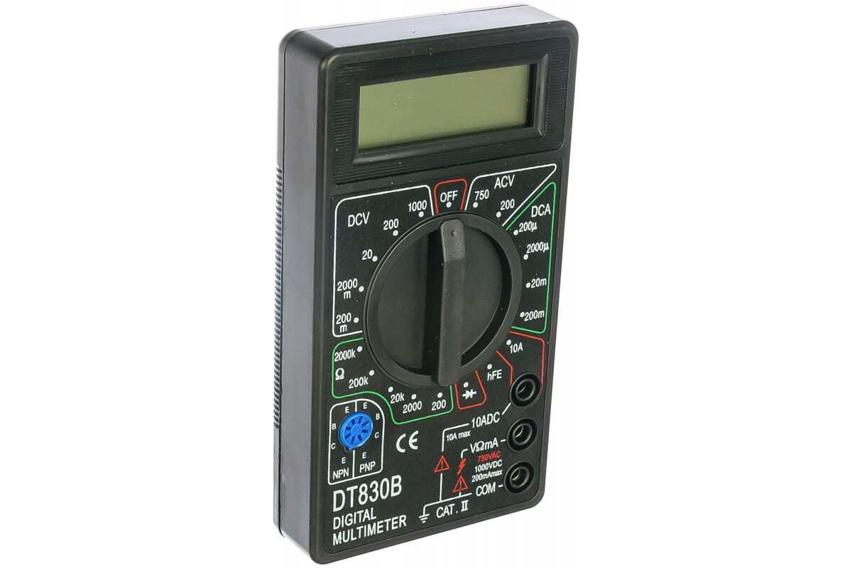 Компактный, износостойкий, 3 1/2 - разрядный мультиметр DT830B предназначен для измерения постоянного и переменного напряжения, постоянного и переменного тока, сопротивления, проверки диодов, транзисторов.