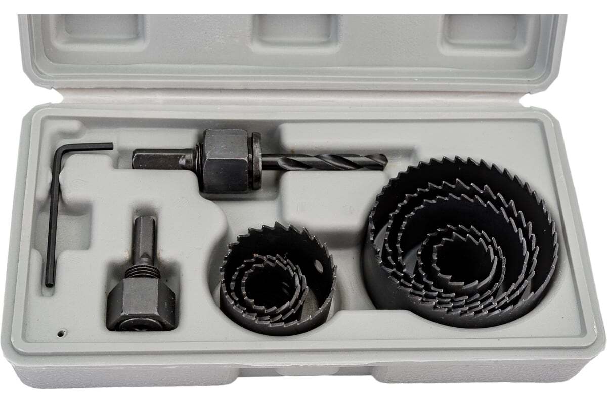 - Коронки по дереву - 8 шт.: 19, 22, 25, 29, 38, 44, 51, 64 мм.