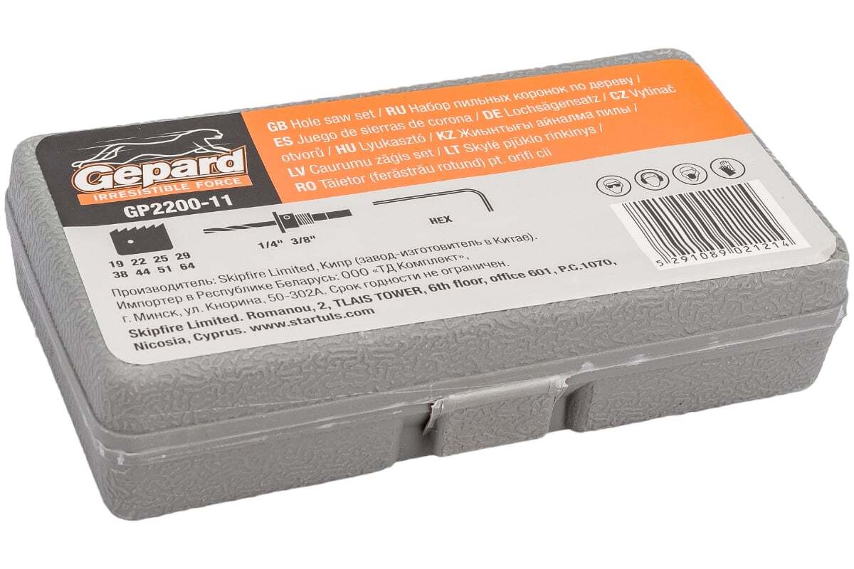 Набор пильных коронок по дереву 11 предметов Gepard GP2200-11 применяется для пиления отверстий в дереве, фанере, ДСП, пластике при установке распределительных коробок, электророзеток, потолочных светильников и т.д. Используется в качестве сменной насадки для дрелей в режиме сверления без удара.