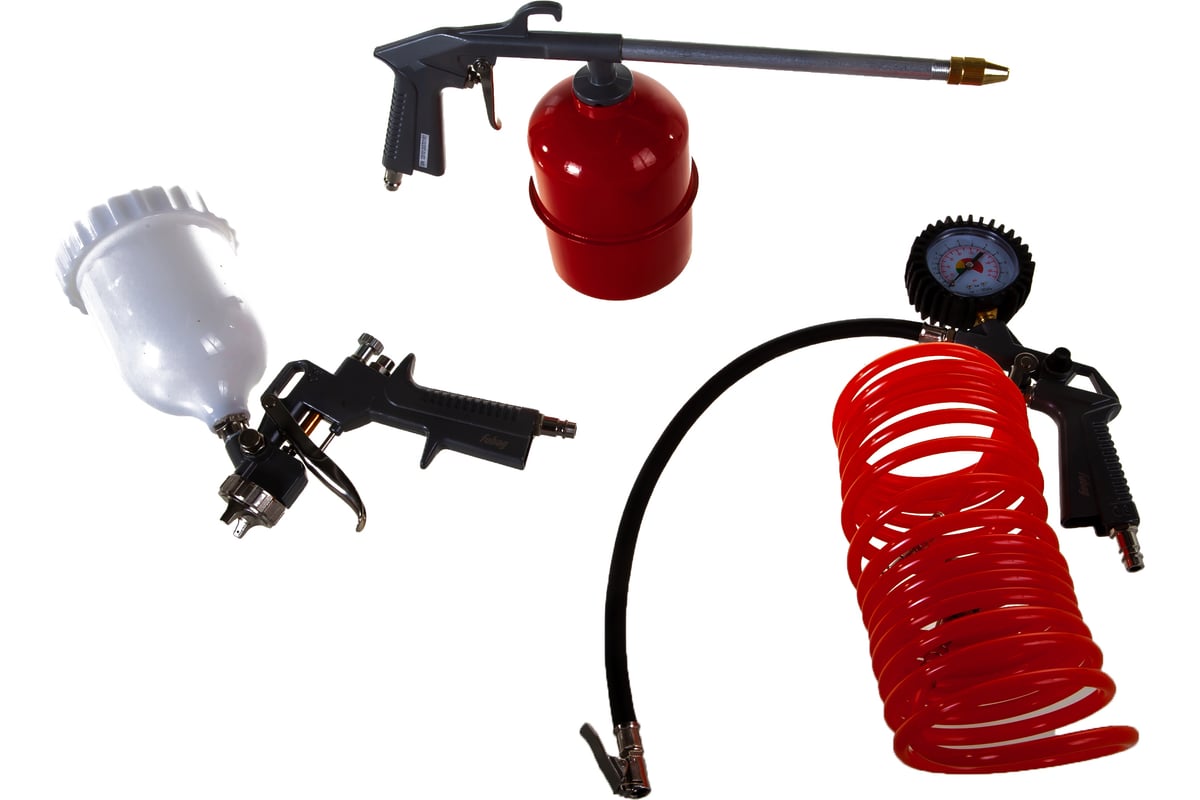 FUBAG 120101 — это один из самых востребованных пневматических наборов, который закрывает основные потребности владельца компрессора. Комплект ориентирован на широкий спектр задач: от финишной покраски и антикоррозийной обработки до обслуживания колес и очистки поверхностей сжатым воздухом. Все инструменты оснащены универсальными разъемами «рапид», что позволяет менять оснастку за считанные секунды.