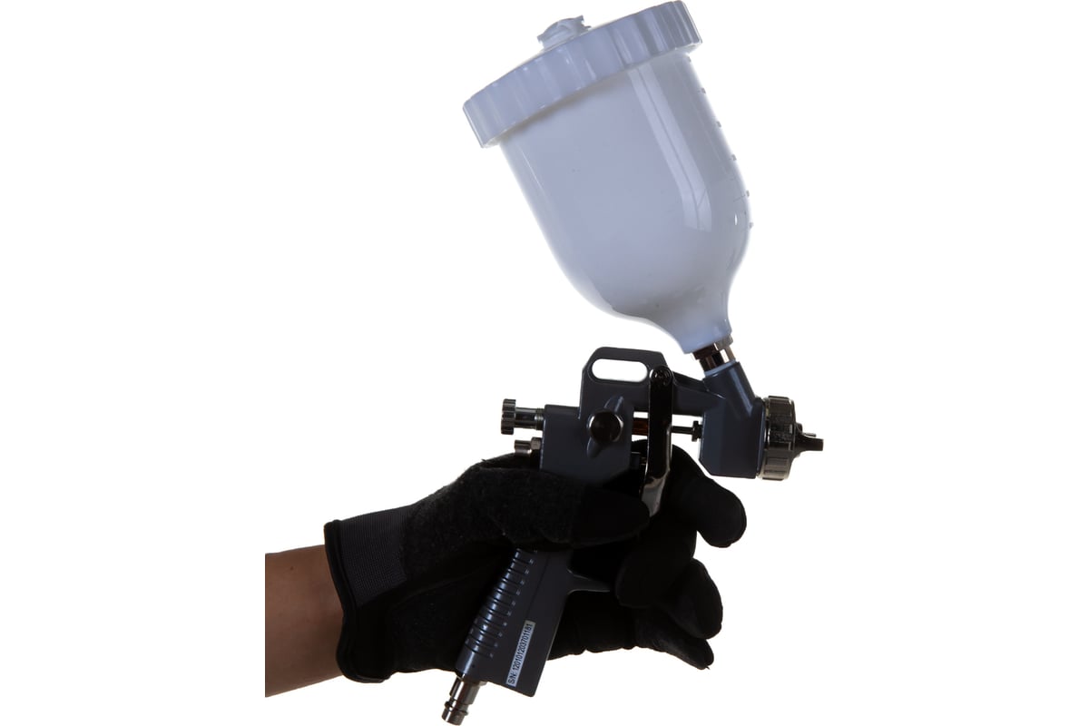 Краскопульт с верхним бачком (0.5 л): предназначен для нанесения лакокрасочных материалов (сопло 1.5 мм).