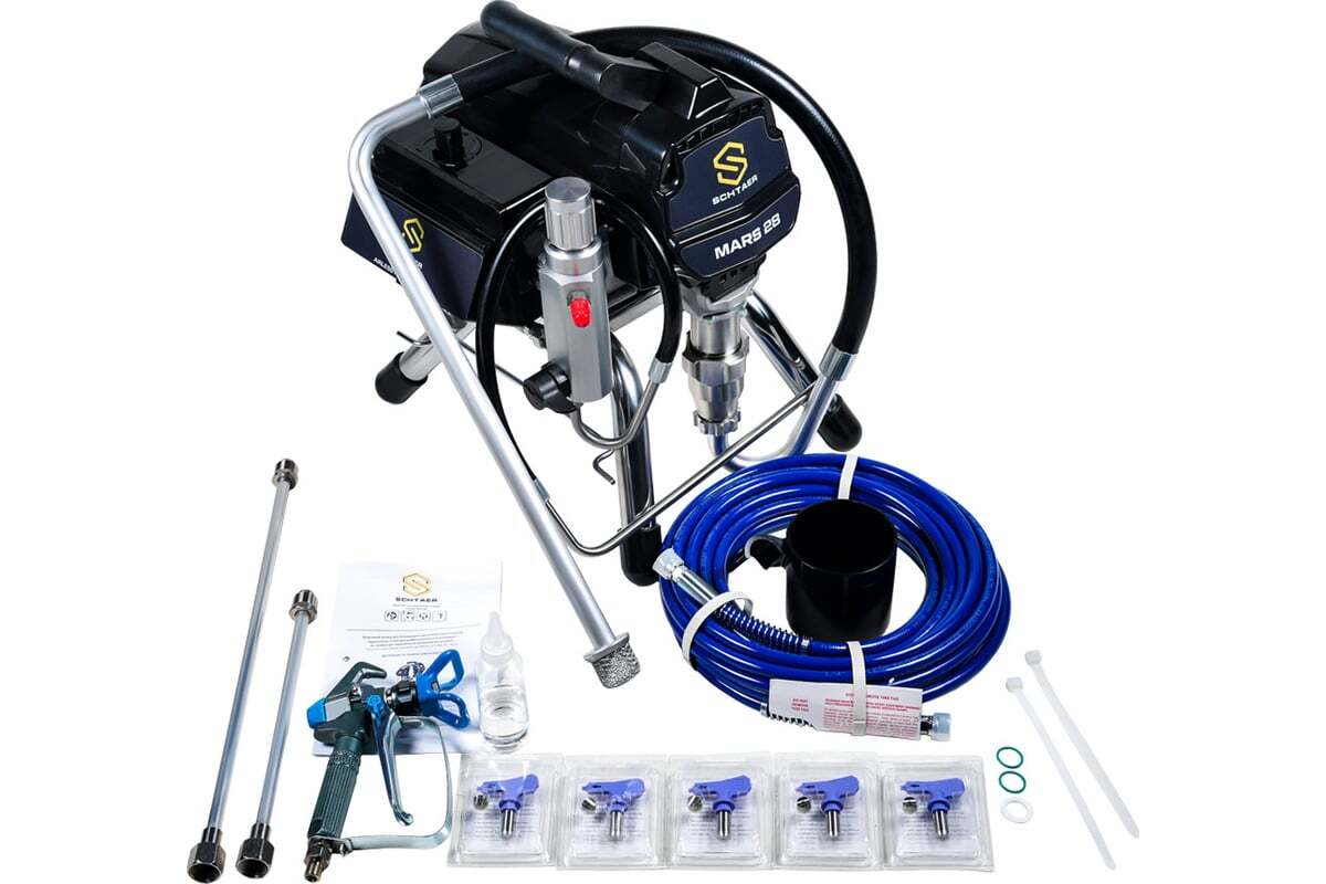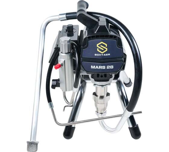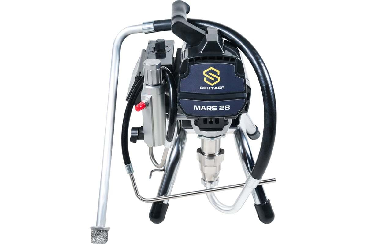 Schtaer Mars 28 - окрасочный аппарат для внутренней покраски стен и потолков. Окрасочный аппарат безвоздушного распыления краски предназначен для строительной покраски, внутри и снаружи, также окрасочный аппарат можно использовать для покраски деревянных и металлических конструкций красками средней вязкости. Окрасочный аппарат работает от стандартной электрической сети, забирает краску из ведра и подает ее с помощью поршневого насоса на краскопульт для безвоздушного распыления.