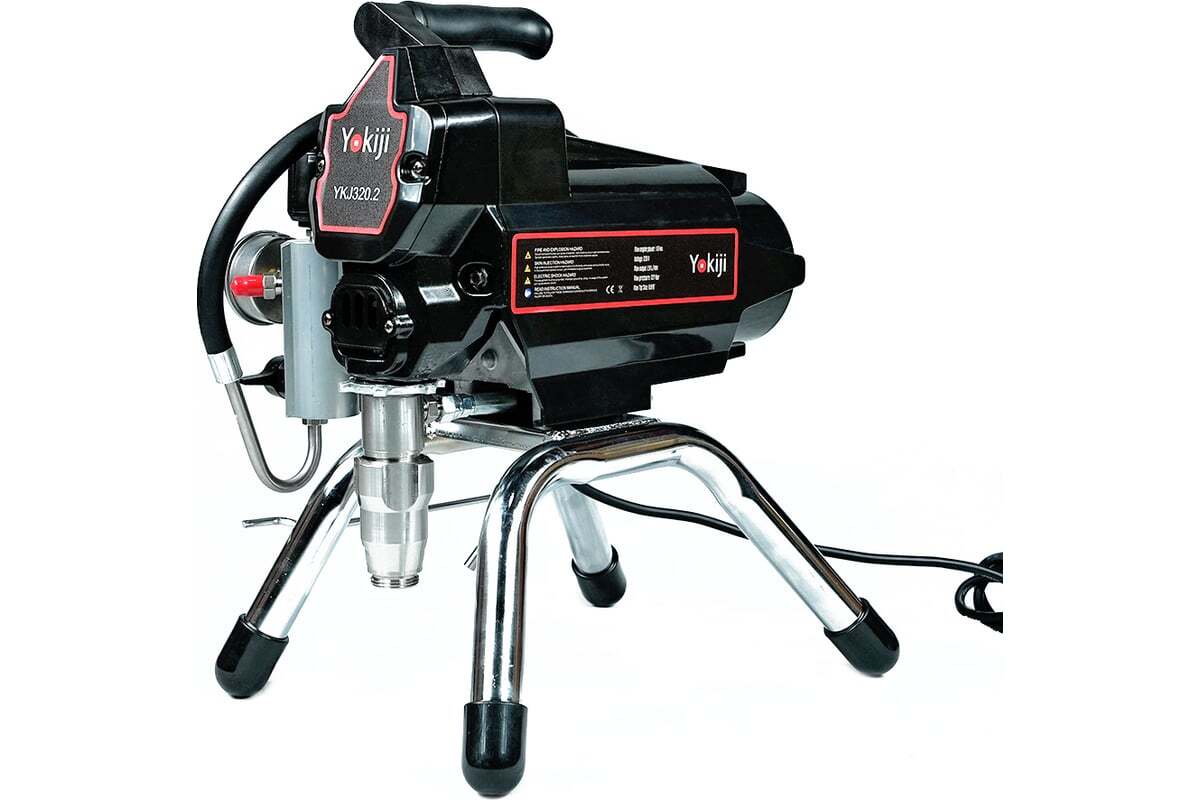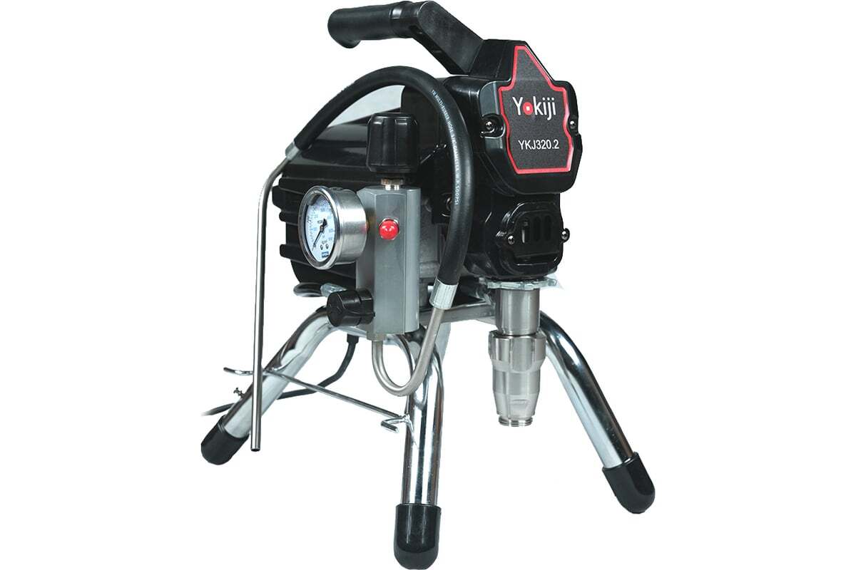 YOKIJI YKJ 320.2 – компактный легкий поршневой окрасочный аппарат с фильтром материала. Ориентирован на выполнение интерьерных отделочных работ: нанесения грунтов, красок, эмалей на стены, потолки; также может применяться при окраске фасадов зданий, металлических и деревянных конструкций. Аппарат работает по принципу безвоздушного распыления под высоким давлением: материал подается от окрасочного агрегата через краскопульт, оснащенный соплом в соответствии с распыляемым материалом.