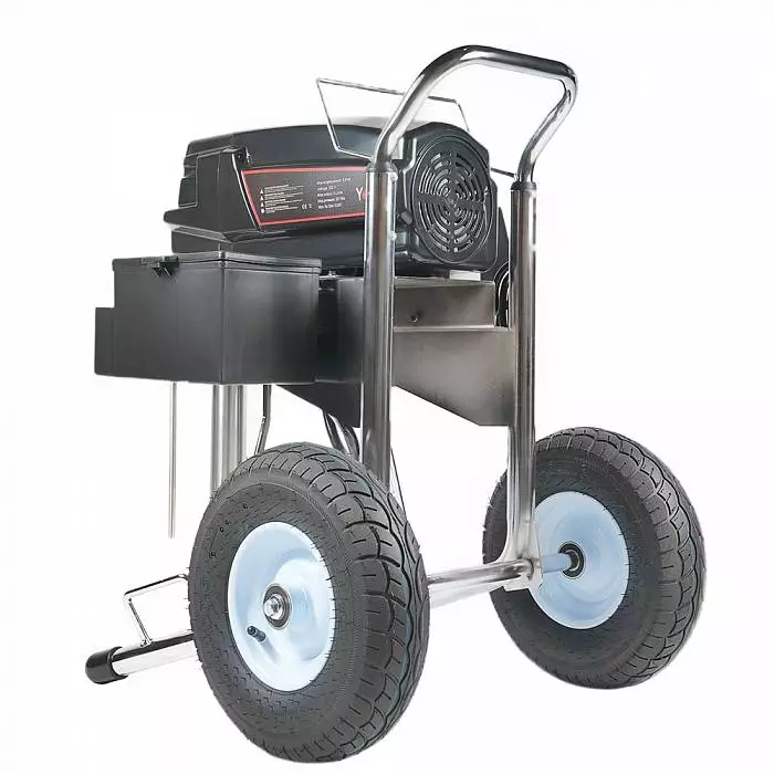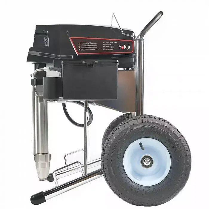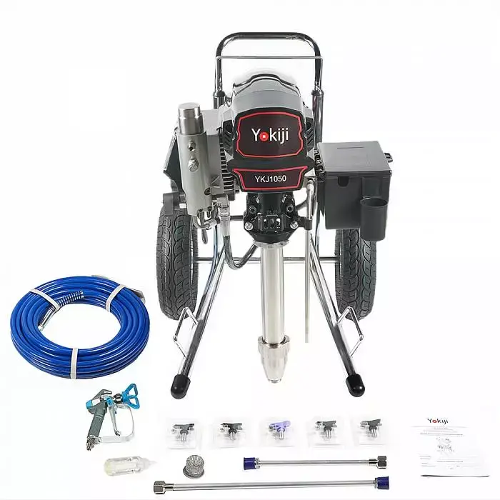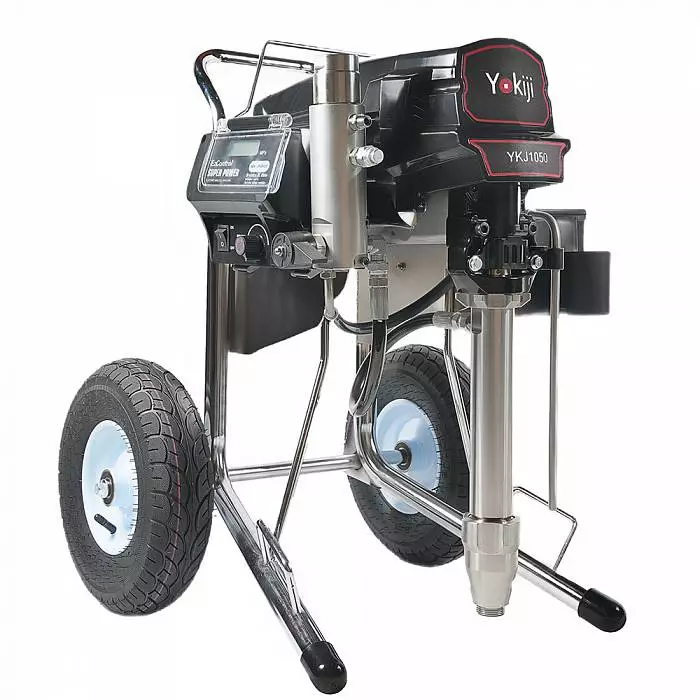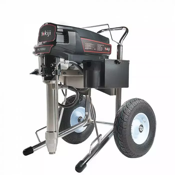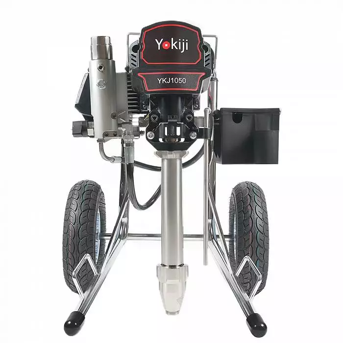YOKIJI YKJ 1050 – окрасочный аппарат, который представляет собой универсальную установку для распыления составов разной степени вязкости, в том числе высокой вязкости. Аппарат обладает высокой скоростью подачи материала - производительностью до 5 л/мин. Подключение шланга возможно до 90 метров. Аппарат обладает мощностью 3,5 кВт, работает под давлением 227 Бар, что обеспечивает высокое качество (равномерность) покрытия окрашиваемой поверхности распыляемым материалом. В том числе им можно наносить сложные интерьерные краски, вязкие ЛКМ, жидкие теплоизоляционные и огнезащитные материалы, однокомпонентные гидроизоляции, полимерные шпаклевки, эпоксидные материалы.