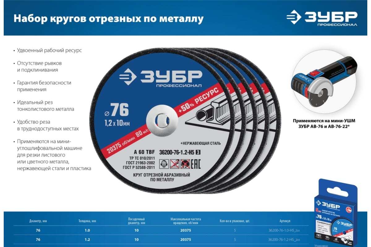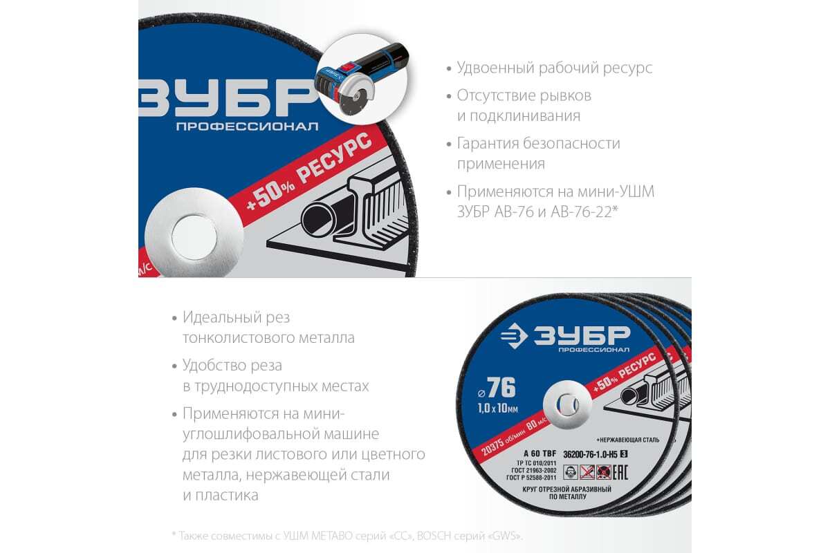 Преимущества отрезных кругов по металлу ЗУБР 36200-76-1.0-H5_z03