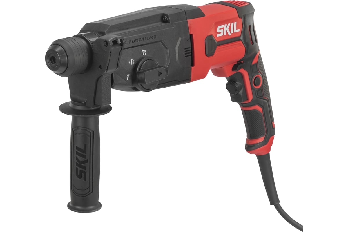 SKIL RH1109 — это универсальный перфоратор мощностью 850 Вт, который отлично подходит для домашнего мастера. Главная особенность комплектации SE00 — наличие переходного кулачкового патрона, что превращает перфоратор в мощную дрель для работы с обычными сверлами по дереву и металлу. Энергии удара в 2.8 Дж достаточно для уверенного бурения отверстий в бетоне до 26 мм. Модель оснащена пневматическим ударным механизмом и функцией предустановки скорости, что позволяет точно настроить инструмент под конкретный материал.