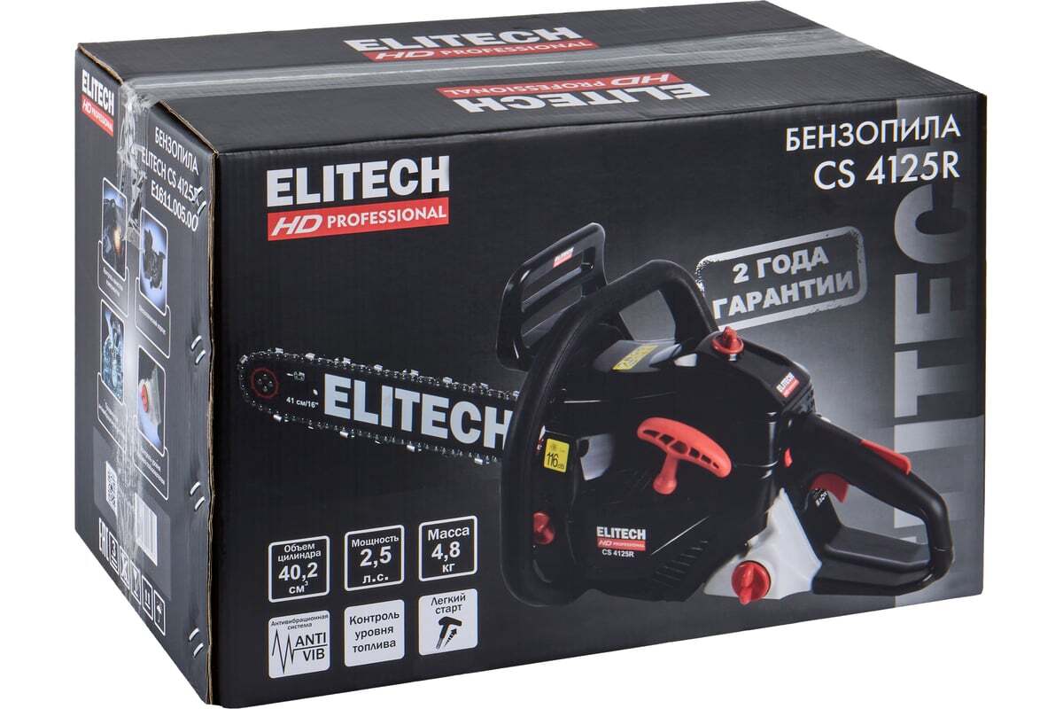 Преимущества Elitech CS 4125R HD 204813- Мощная (1,9 кВт) модель лёгкого класса (4,8кг, без шины и цепи)