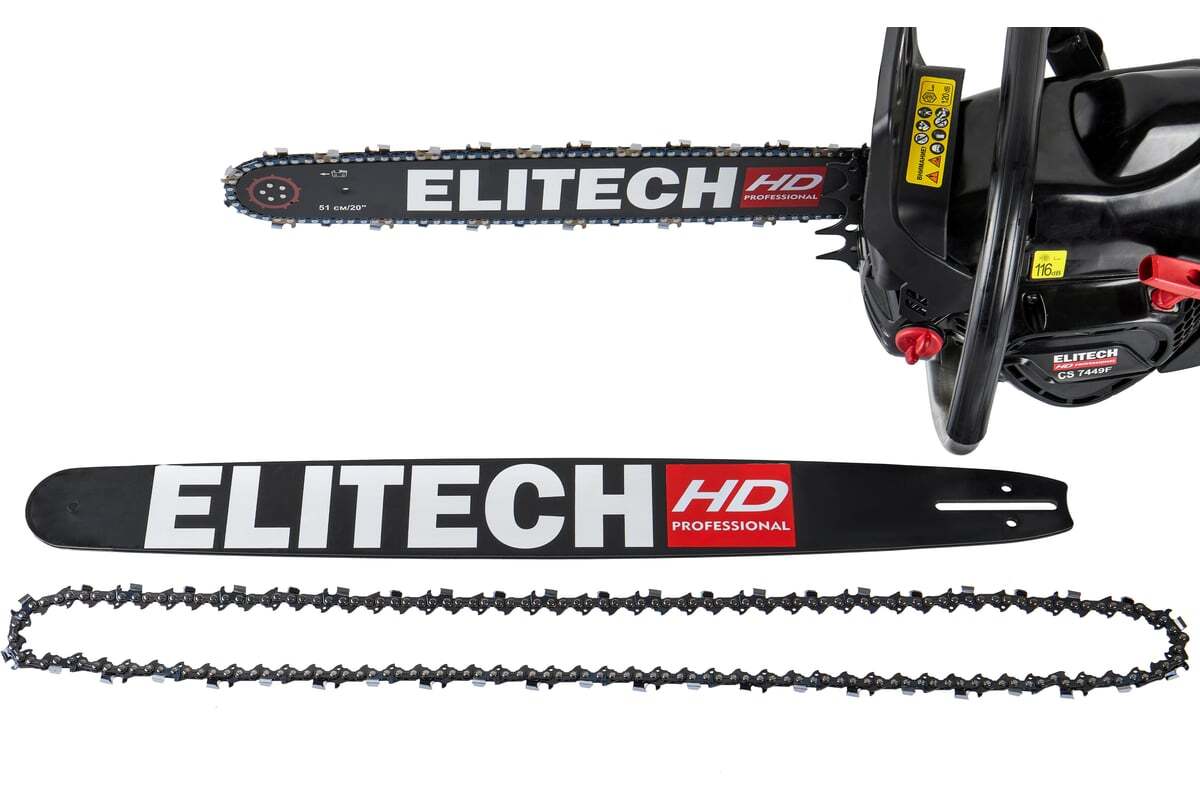 Преимущества Elitech CS 7449F 204817- Модель профессионального уровня для валки деревьев, в том числе и большого диаметра, с возможностью установки пильной гарнитуры до 28"/ 71см