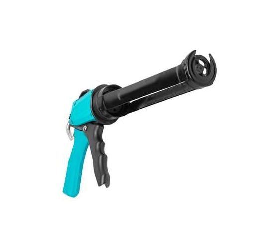 Корпус выполнен из сочетания металла и пластика, а толкатель изготовлен из стального штока, что обеспечивает устойчивость к нагрузкам и стабильную работу при выдавливании густых материалов. Круглый шток обеспечивает плавную подачу герметика без рывков, а механизм быстрого сброса давления помогает остановить поток состава после отпускания курка и уменьшить перерасход материала. Пистолет рассчитан на использование со стандартными тубами около 310 мл (0.31 л) и подходит для большинства строительных герметиков и клеевых составов.