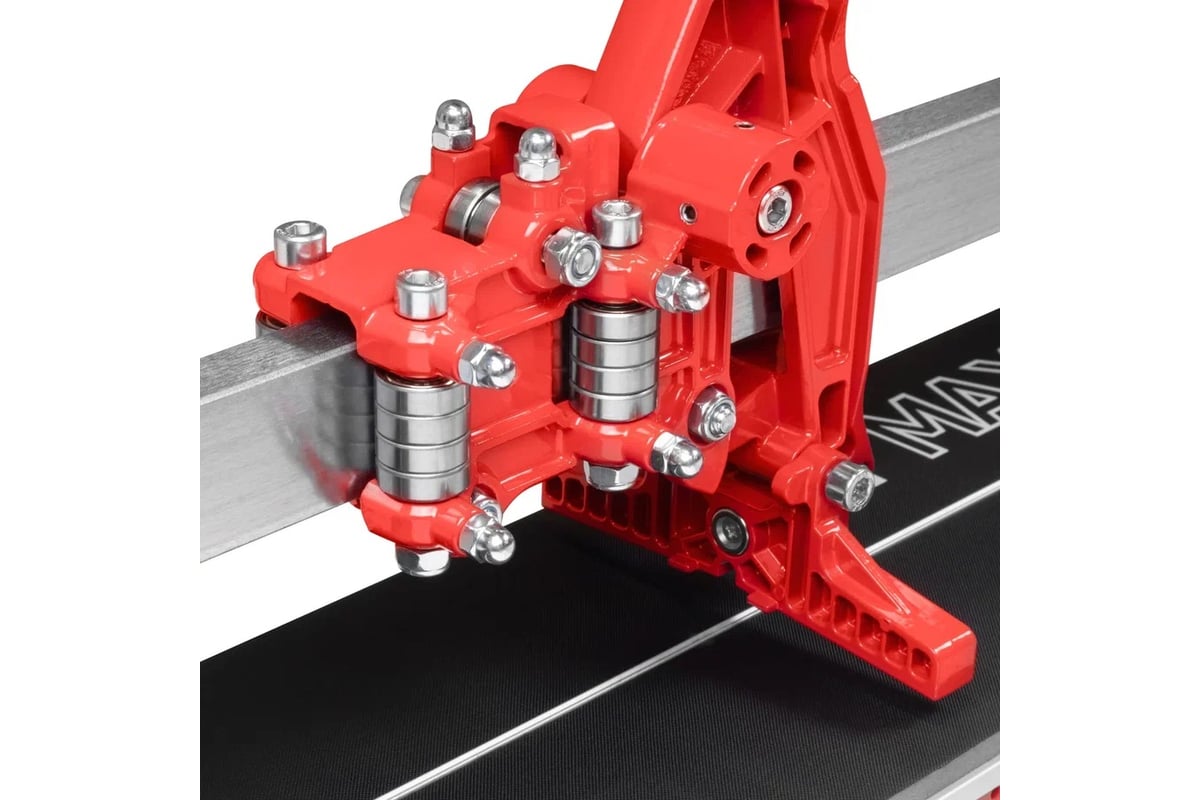 DLT MAXLINE-1200 — флагманский монорельсовый инструмент для работы с крупноформатным керамогранитом. Усиленная стальная станина в сочетании с жестким монорельсом полностью исключает деформацию при резке, обеспечивая идеальную точность. Каретка на 21 подшипнике гарантирует исключительную плавность хода, а зеленый лазерный указатель позволяет быстро и безошибочно выставить плитку по разметке. Магнитный фиксатор лапки разделителя дает возможность работать одной рукой, переходя от реза к разлому за доли секунды.