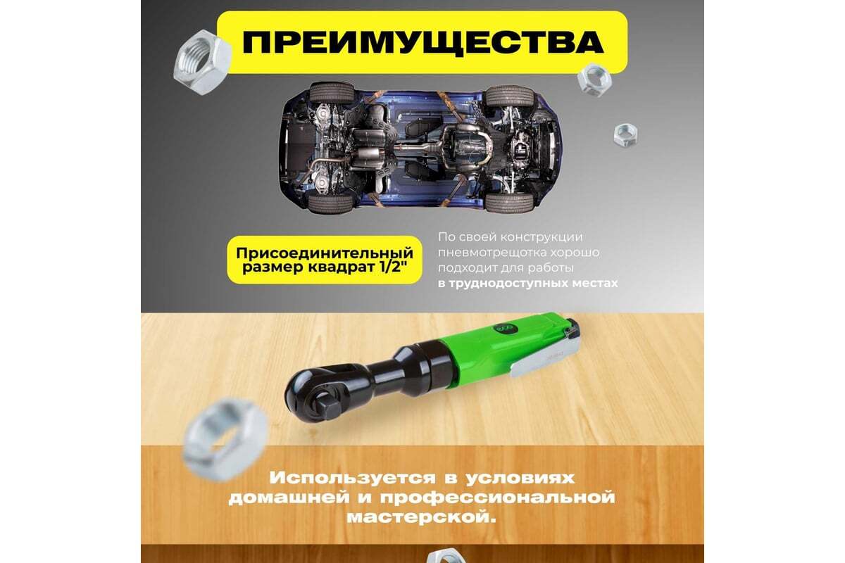Пневмотрещотка ECO APR-70 используется для завинчивания и отвинчивания резьбовых крепежей.