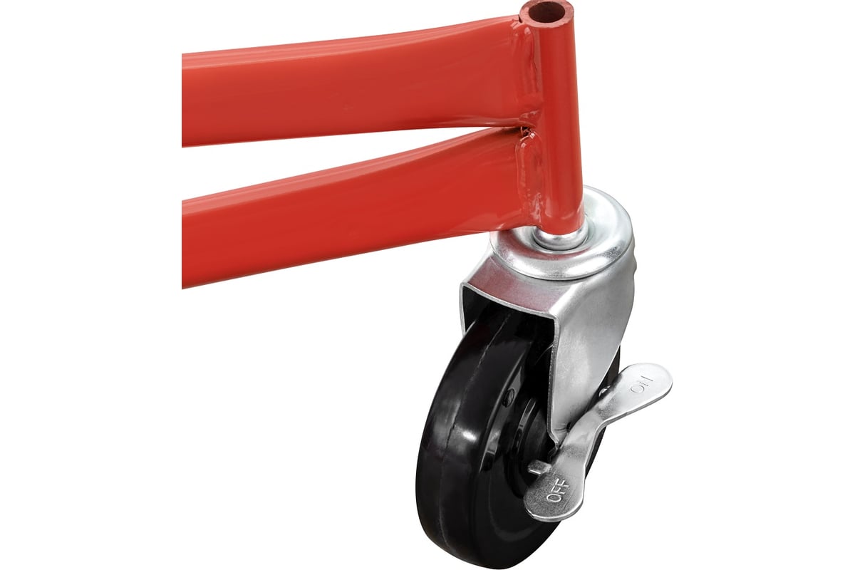 Фиксация колес: Всегда блокируйте тормоза на всех трех колесах перед тем, как начать подъем листа. Это предотвратит самопроизвольное откатывание подъемника при нажатии на лист.