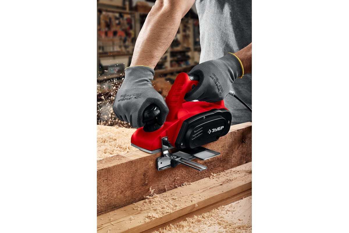 Рубанок Зубр ЗР-750-82 - простой и надежный инструмент, который прекрасно строгает и выравнивает поверхности. Бесступенчатая регулировка глубины строгания и параллельный упор обеспечивают точность в работе. Имеется кнопка блокировки выключателя, что обеспечивает защиту от случайного включения инструмента. Ножи изготовлены из быстрорежущей стали и имеют двустороннюю заточку, что гарантирует их долгий срок службы.