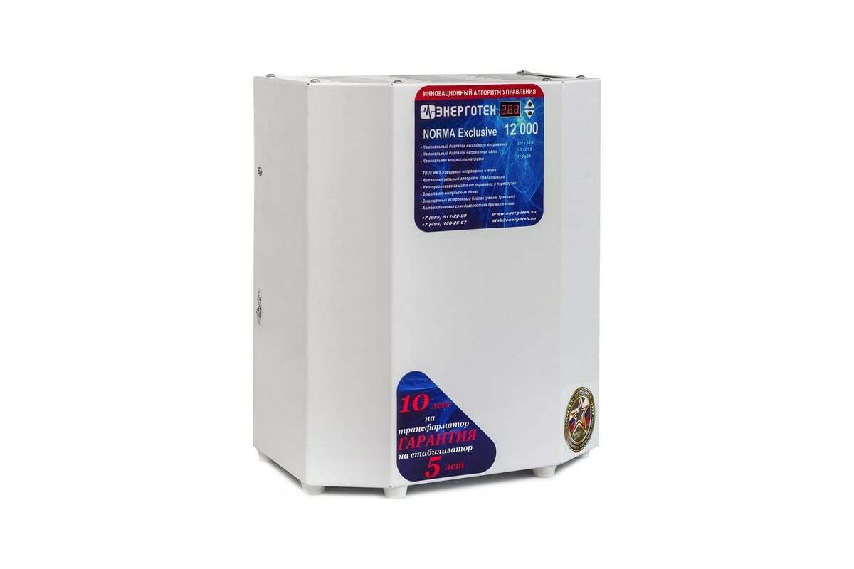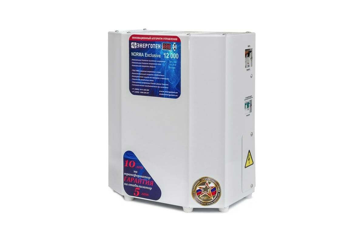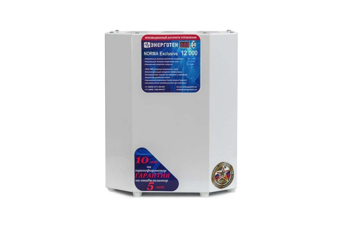 Стабилизатор напряжения (12000 ±11 В 120-275 В) Энерготех NORMA Exclusive 514419 - высокоточный современный прибор для выравнивания напряжения в питающей сети.