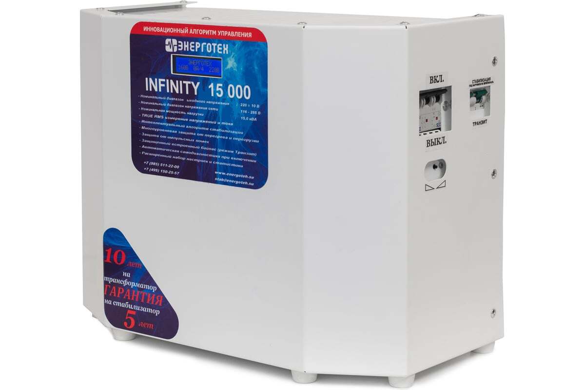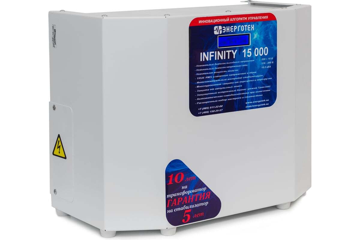 Преимущества Энерготех INFINITY 15000 ±10 В 115-285 В 514466- Высокая точность стабилизации;