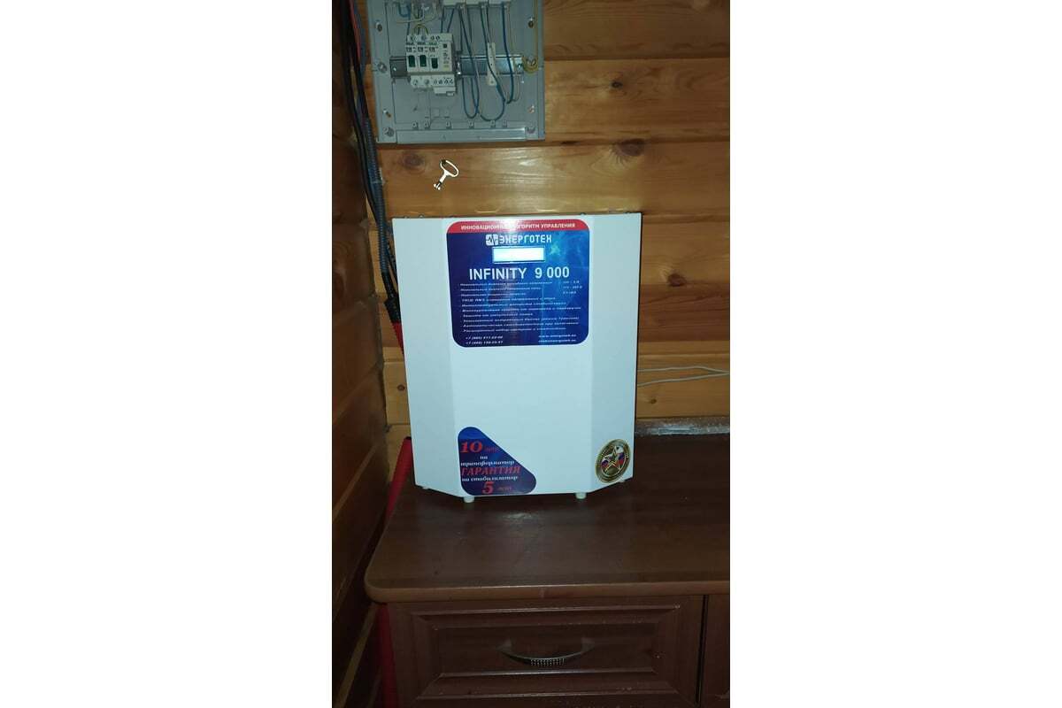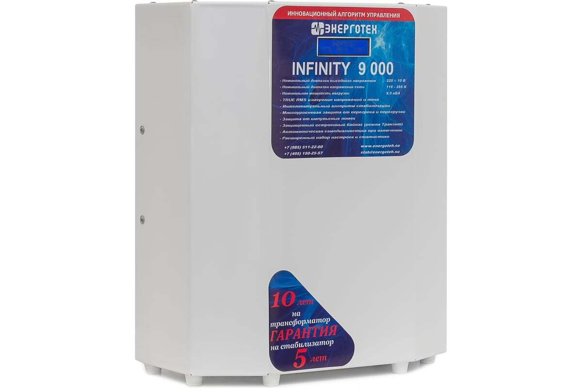 Стабилизатор напряжения 9000 ±10 В 115-285 В Энерготех INFINITY 514464 защищает высокочувствительную аппаратуру от скачков напряжения в электросети.