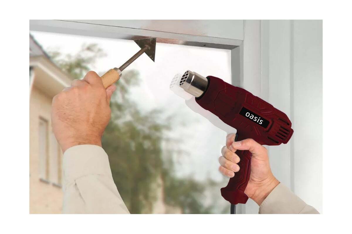 Строительный фен Oasis TG-20R /K/ 4640039483847 используется для работы с различными материалами.