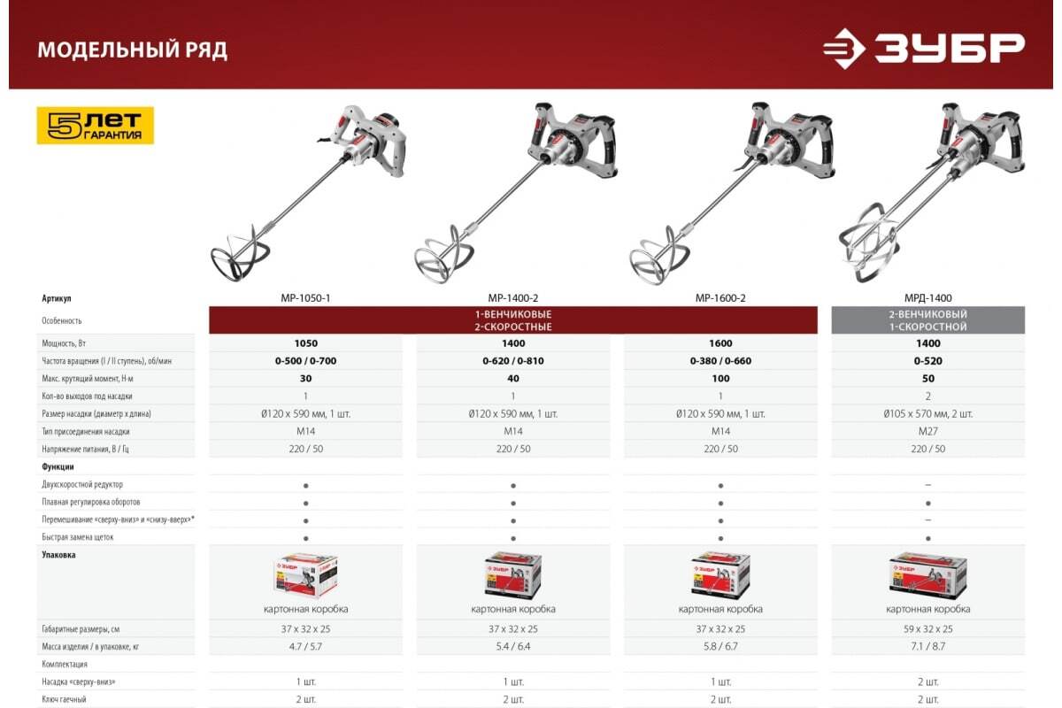 Преимущества ЗУБР МАСТЕР МР-1050-1- Регулировка оборотов - для перемешивания различных материалов без разбрызгивания;