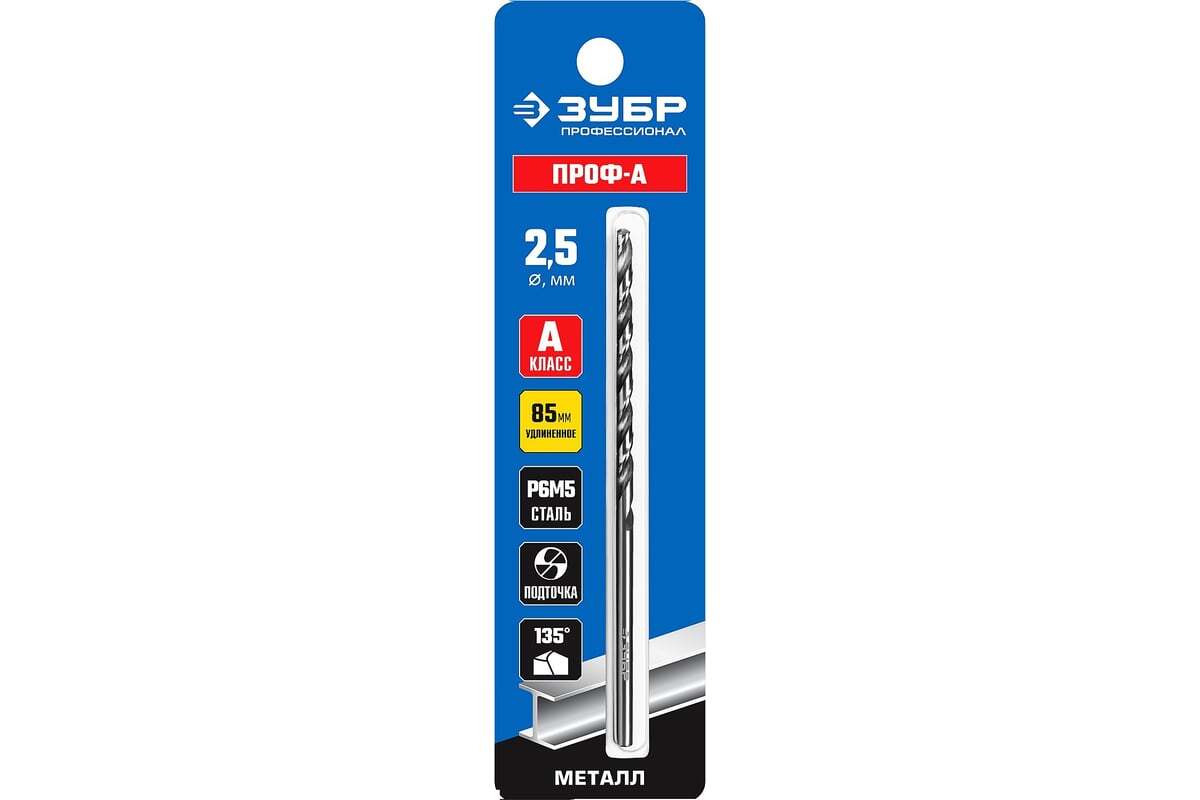 Сверло ЗУБР 29624-2.5, предназначено для сверления металлических конструкций и заготовок. Применяется с шуруповертами и электродрелями. Сверло изготовлено из быстрорежущей стали Р6М5, что обеспечивает высокую стойкость рабочей кромки даже в условиях высоких нагрузок. Сверло по металлу обладает повышенной производительностью, имеет оптимальный угол заточки - 135гр, и выполнено по специальной технологии, разработанной специалистами компании.