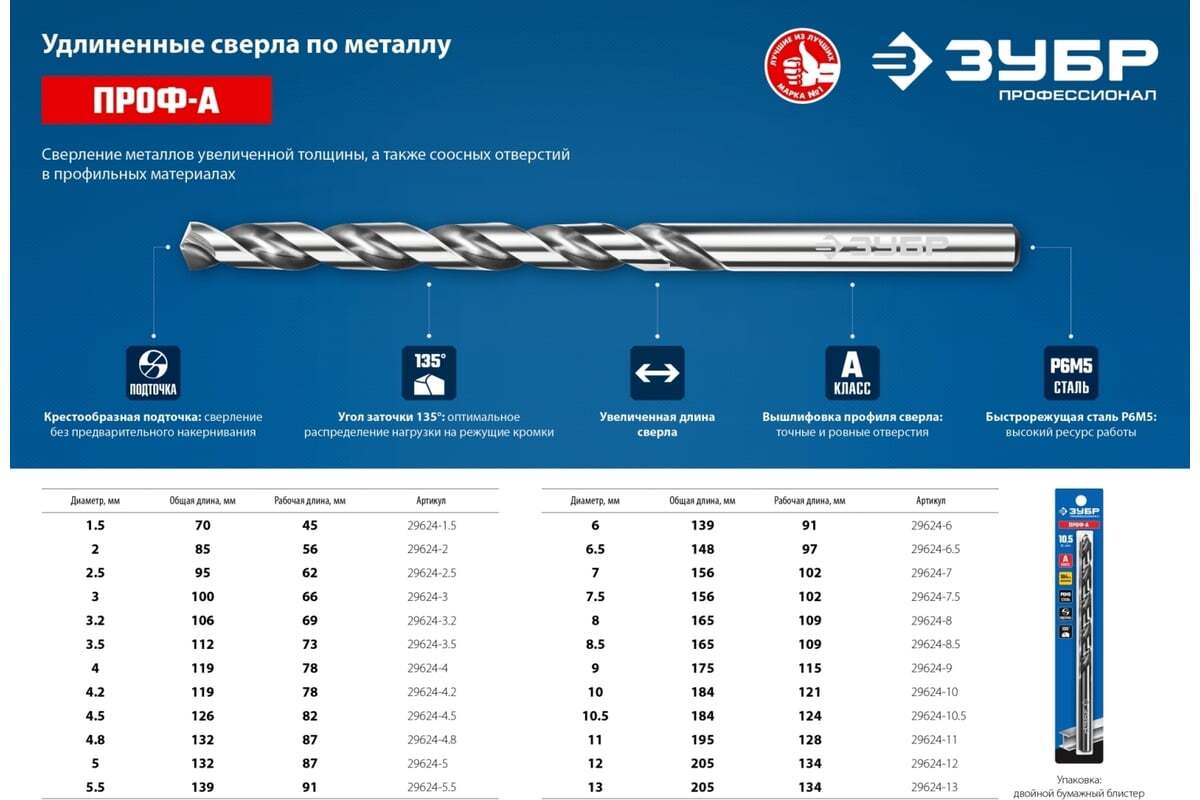 Сверло ЗУБР 29624-4.2, предназначено для сверления металлических конструкций и заготовок. Применяется с шуруповертами и электродрелями. Сверло изготовлено из быстрорежущей стали Р6М5, что обеспечивает высокую стойкость рабочей кромки даже в условиях высоких нагрузок. Сверло по металлу обладает повышенной производительностью, имеет оптимальный угол заточки - 135гр, и выполнено по специальной технологии, разработанной специалистами компании.