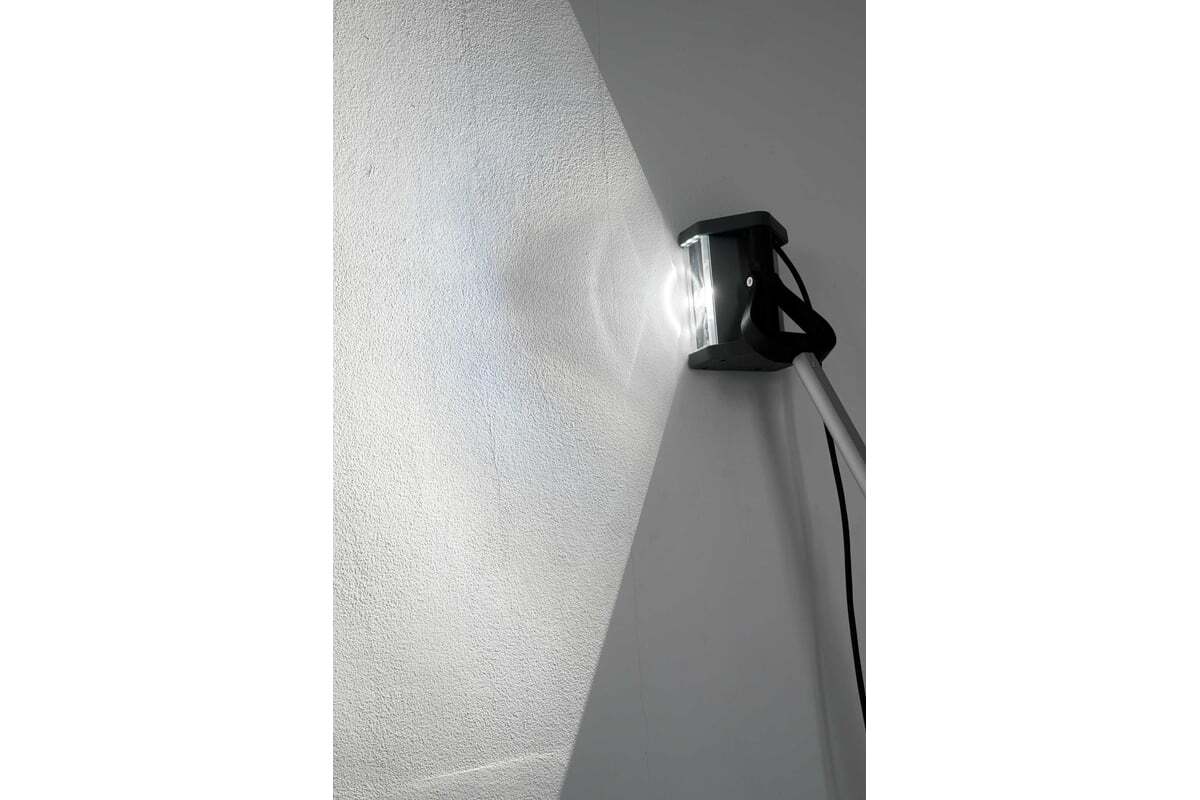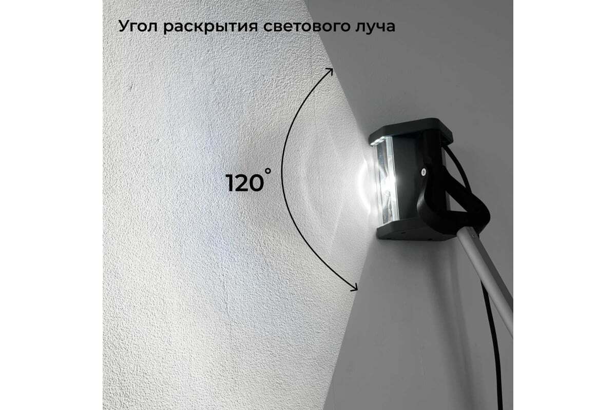 Лампа имеет 5 уровней яркости со значениями силы света до 4800 кд, что позволяет подобрать освещение под разные задачи — от грубой проверки плоскости до финального контроля качества отделки. Управление возможно не только кнопками на корпусе, но и через Bluetooth-приложение, где можно включать и выключать светильник, регулировать яркость и управлять группой ламп. Длина сетевого кабеля составляет около 9 м, что удобно при работе в помещениях и на строительных объектах. Масса светильника примерно 1.2 кг, поэтому его можно использовать как ручной инструмент для инспекции поверхности во время работы.