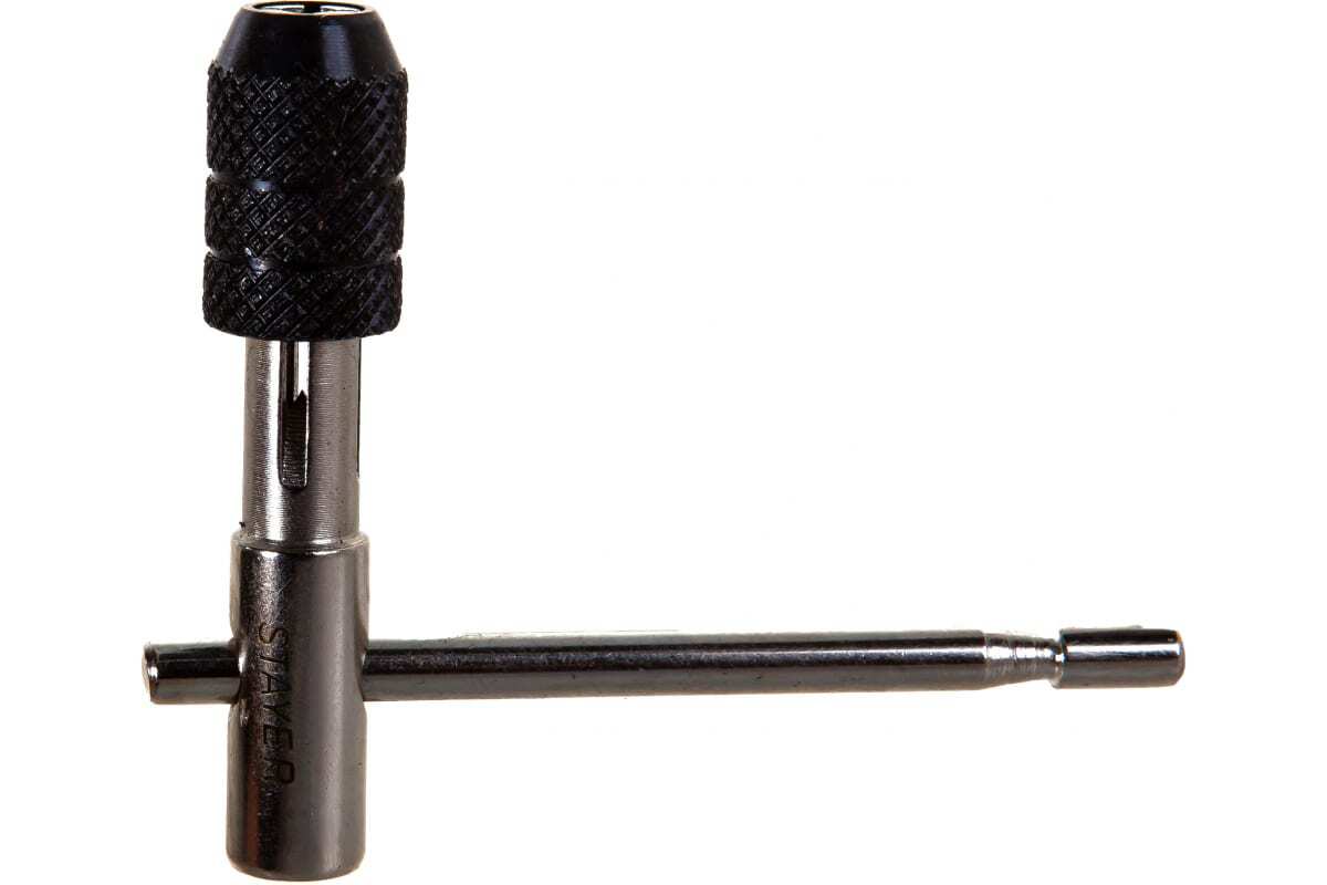 Т-образный метчикодержатель Stayer №2, М3-М6, Professional 28039-T2_z01 оснащен скользящим воротком, который упрощает вращение инструмента. Это позволяет работать с небольшими усилиями и точно выставлять направление движения.