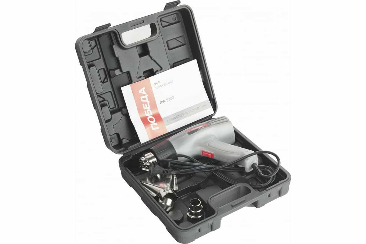 Технический фен Победа ПФ-2200 170302200 используется для прогрева замерзших труб, спаивания пластмасс, удаления красочных покрытий, разделения клеевых соединений.